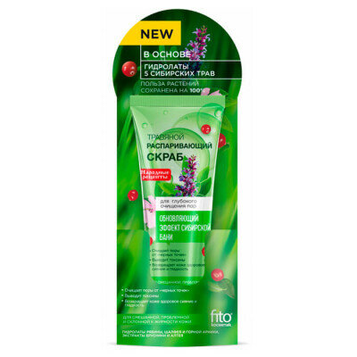 Распаривающий травяной скраб для лица FITO косметик Народные рецепты для очищения пор 75 мл