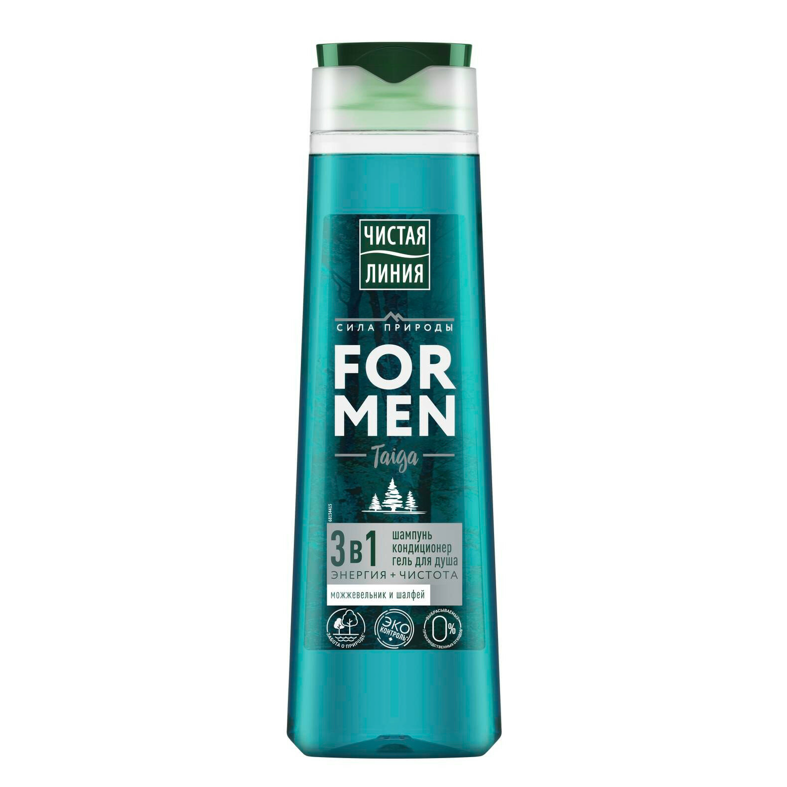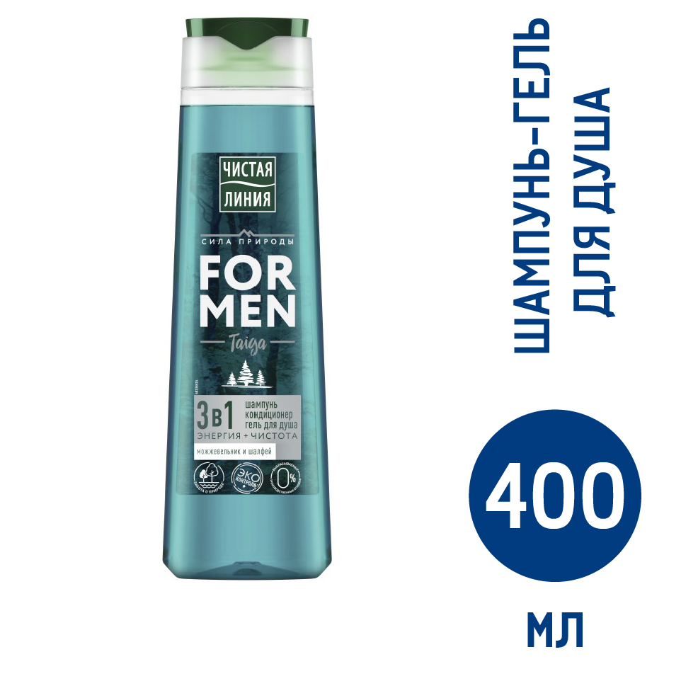 Чистая Линия FOR MEN шампунь,кондиционер и гель для душа 3в1 taiga энергия+чистота Можжевельник и шалфей 400 мл