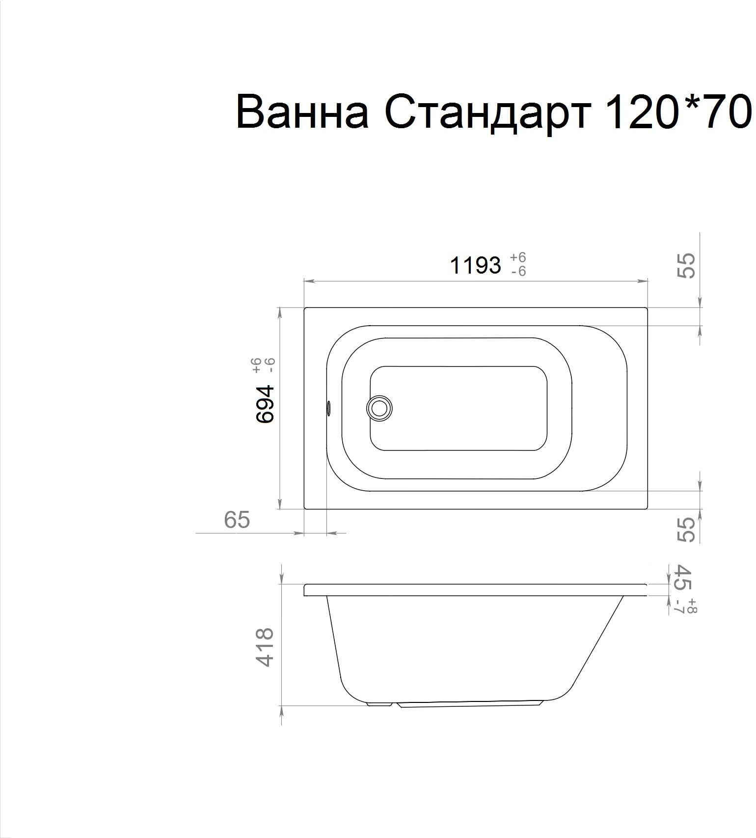 Ванна акриловая «Triton Стандарт» 120 x 70 см (прямоугольная)