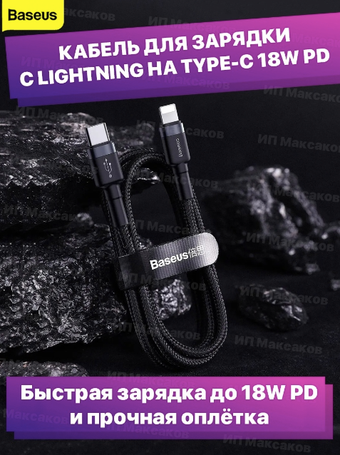 СохранитьКабель 1м USB Type-C (m) - Lightning (m) Baseus Cafule Cable - Черный/Серый, для apple, iphone интересное: