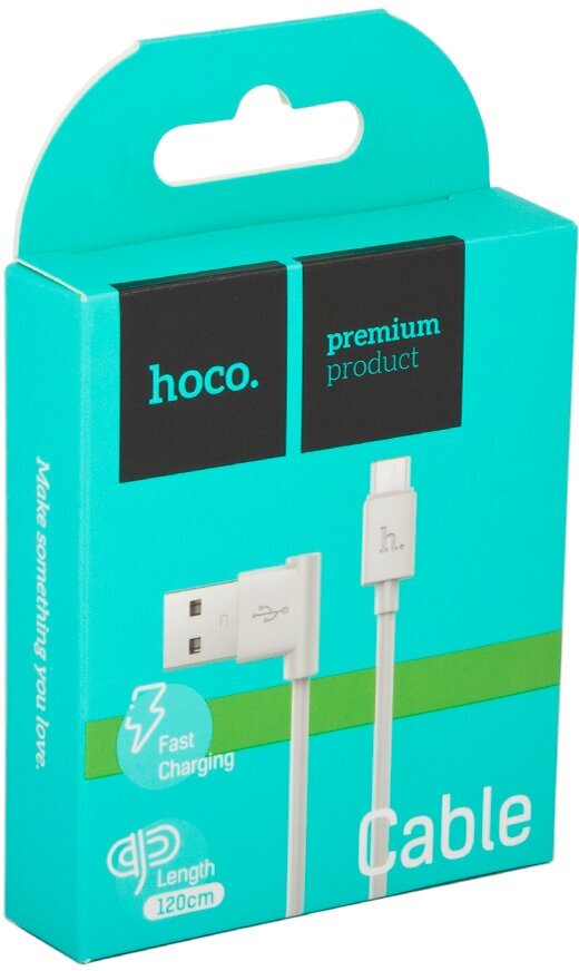 Купить Кабель MicroUSB to USB HOCO UPM10m Shape MicroUSB L-shape 1.2m with nickel plated connectors (белый)