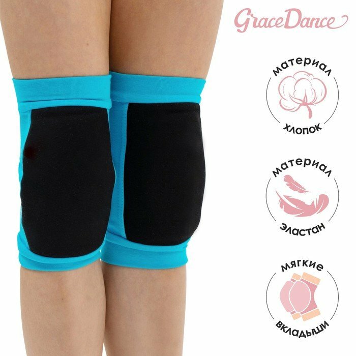 Grace Dance Наколенники для гимнастики и танцев с уплотнителем, размер M (11-14 лет), цвет бирюза/чёрный