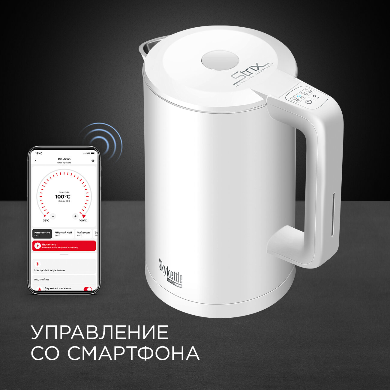 Легко управляется, можно управлять на ручке чайника, а так же через приложение. |