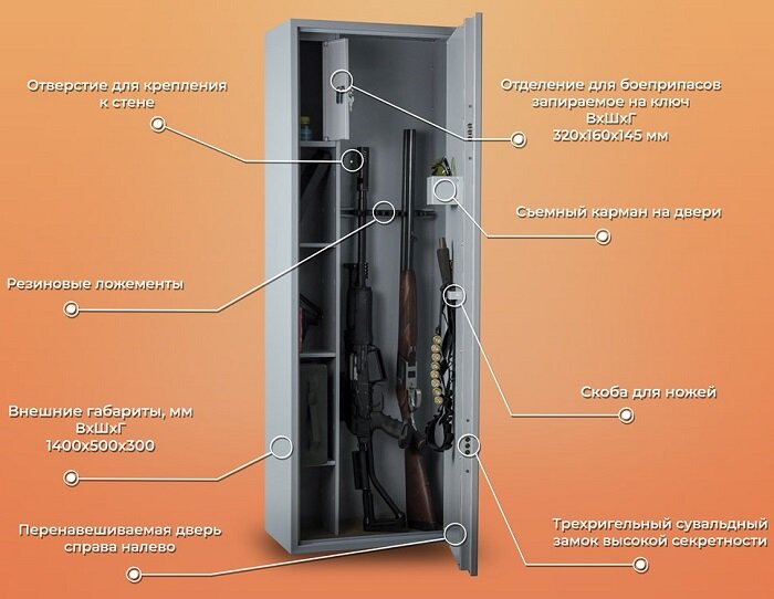 | Плюсы: | Бюджетный вместительный оружейный шкаф. |