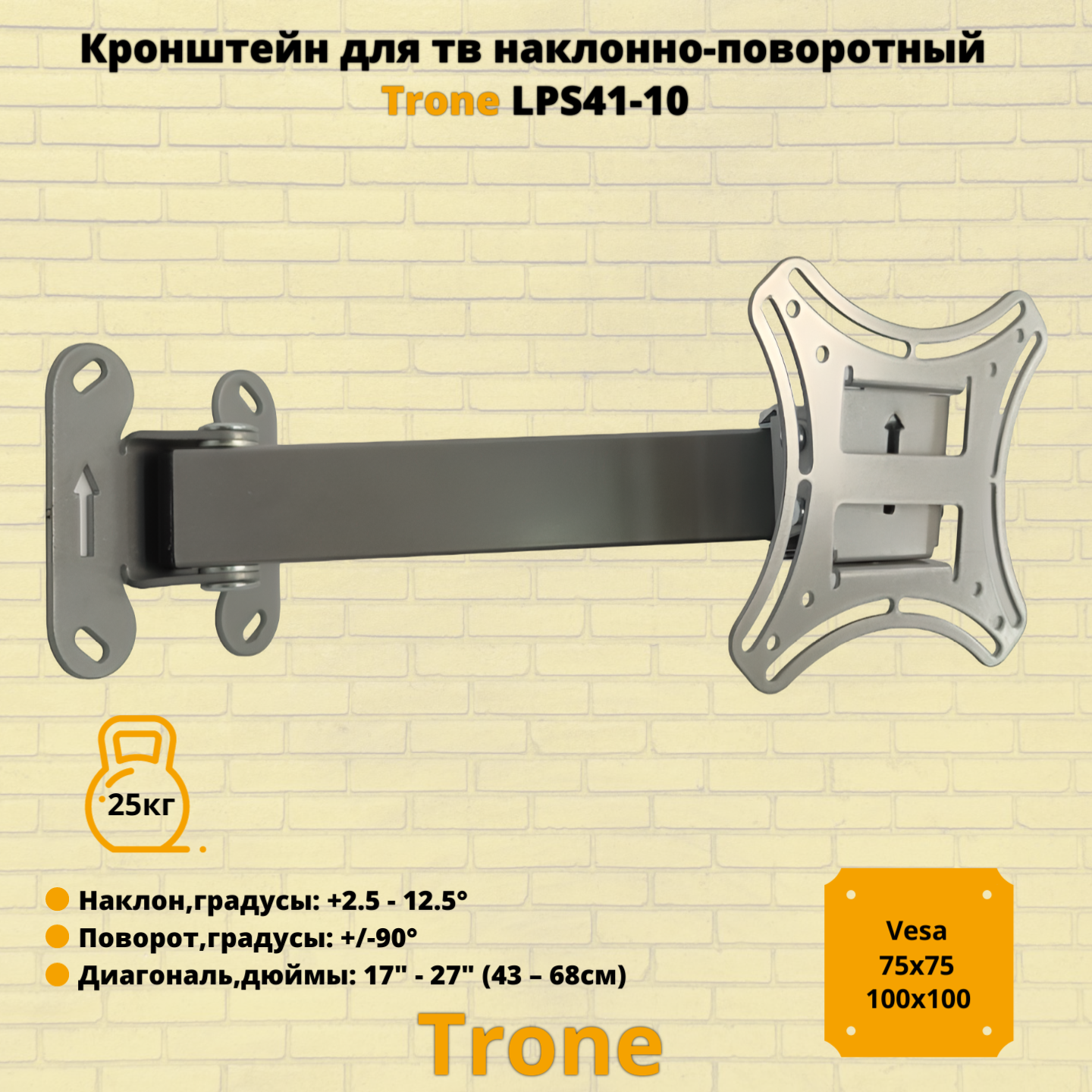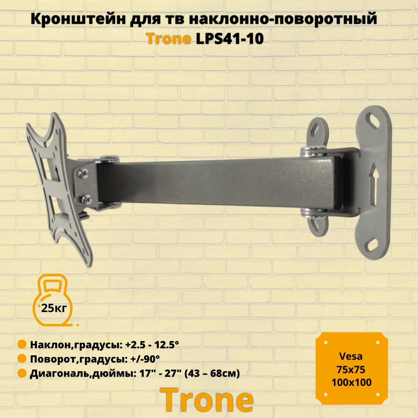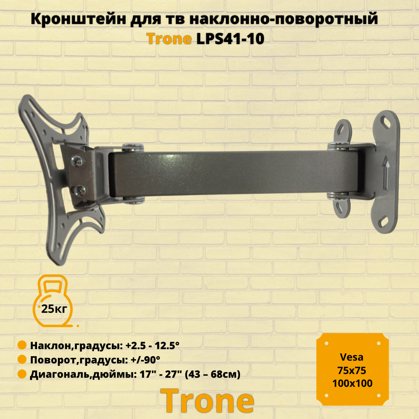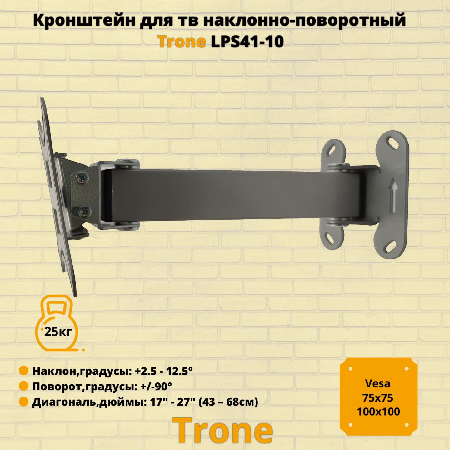 Кронштейн для телевизора на стену наклонно-поворотный с диагональю 17"-27" Trone LPS 41-10,черный