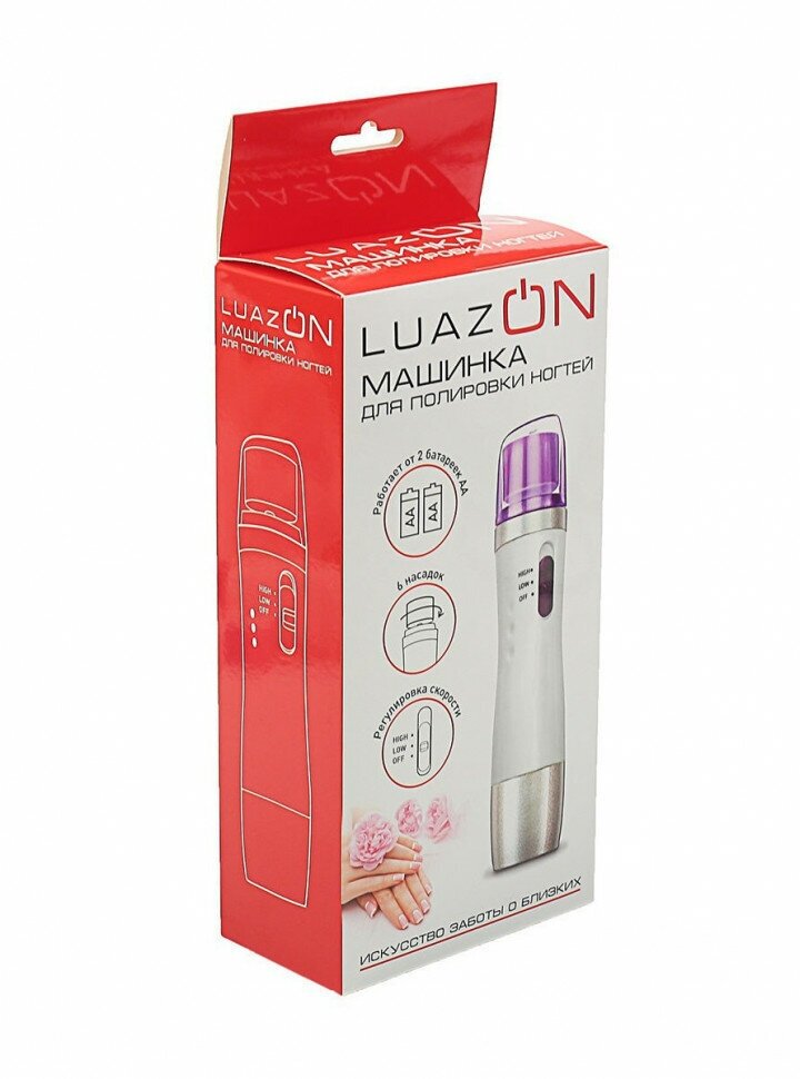 Luazon Home Аппарат для полировки ногтей Luazon LMM-007, 6 насадок, 2xАА (не в комплекте), белый