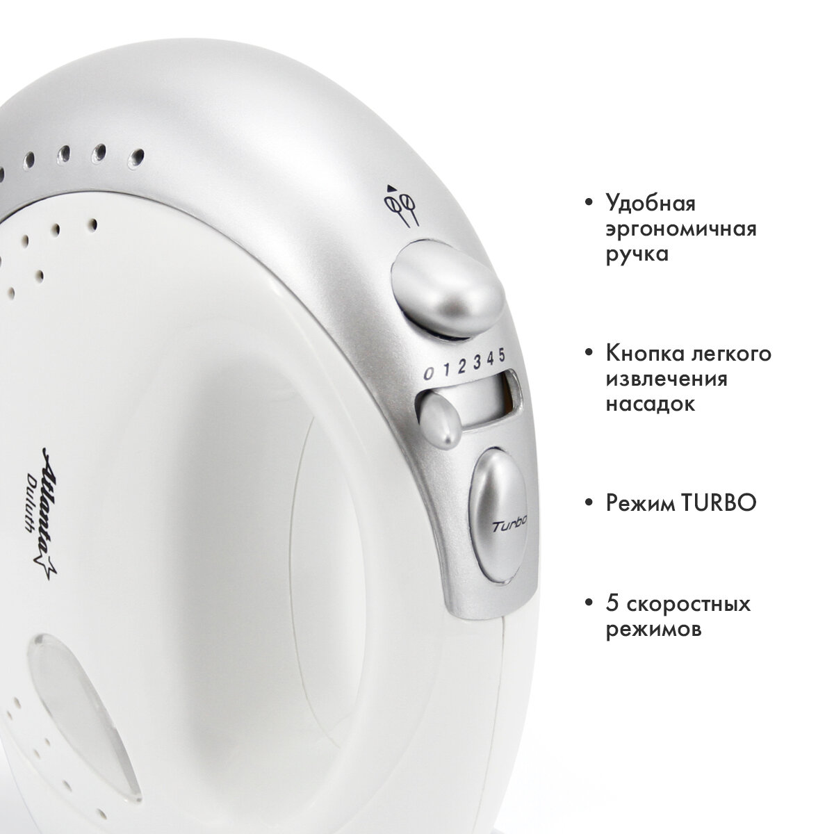 Ручной Миксер Atlanta ATH-3113, мощность 300 Вт, два комплекта насадок, турбо, пять скоростей