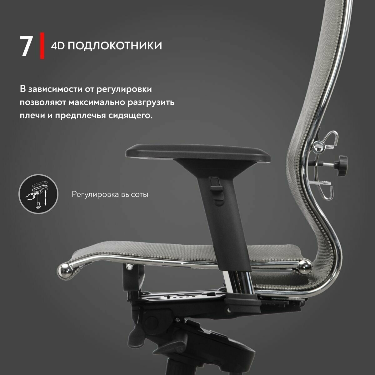 Кресло офисное метта "L1m 42/2D", хром, 2D-подлокотники, сиденье и спинка мягкие, велюр, темно-серое