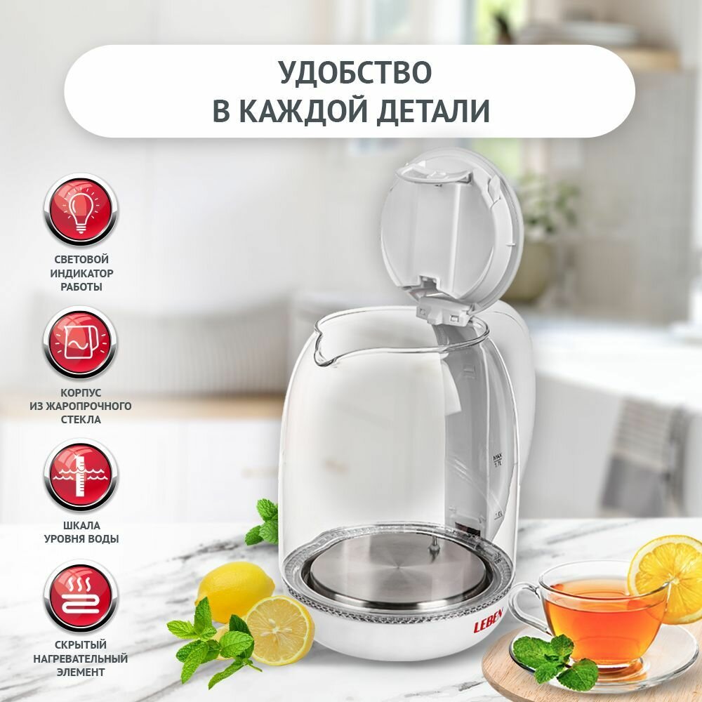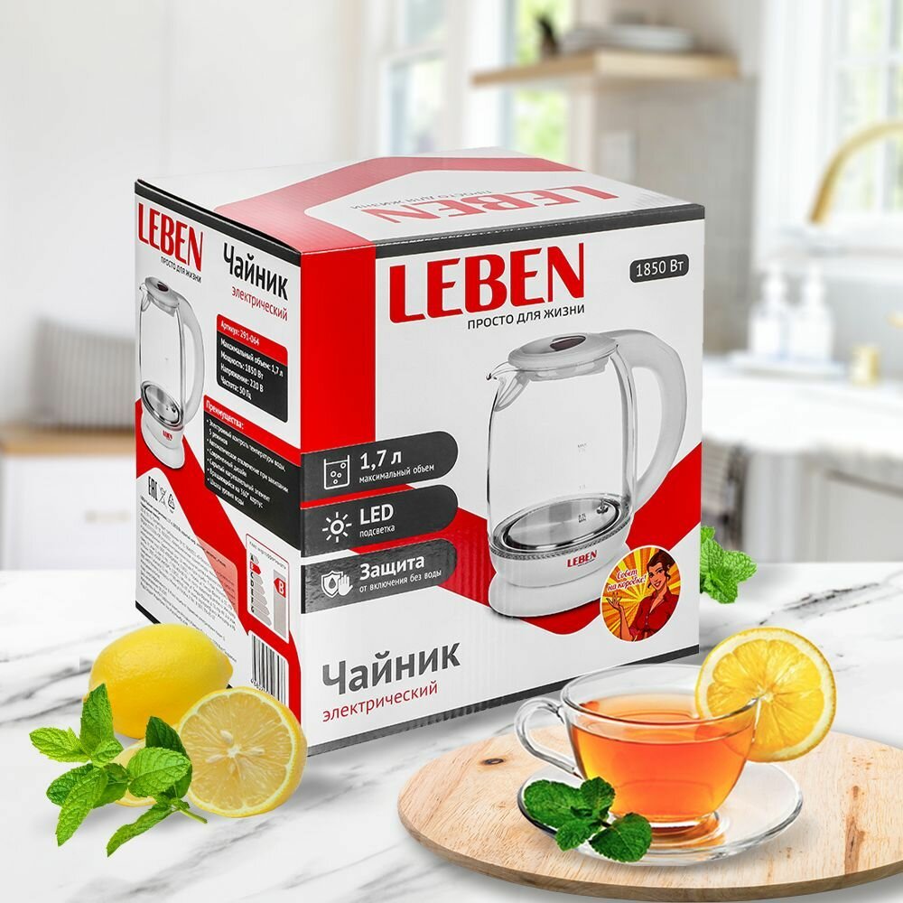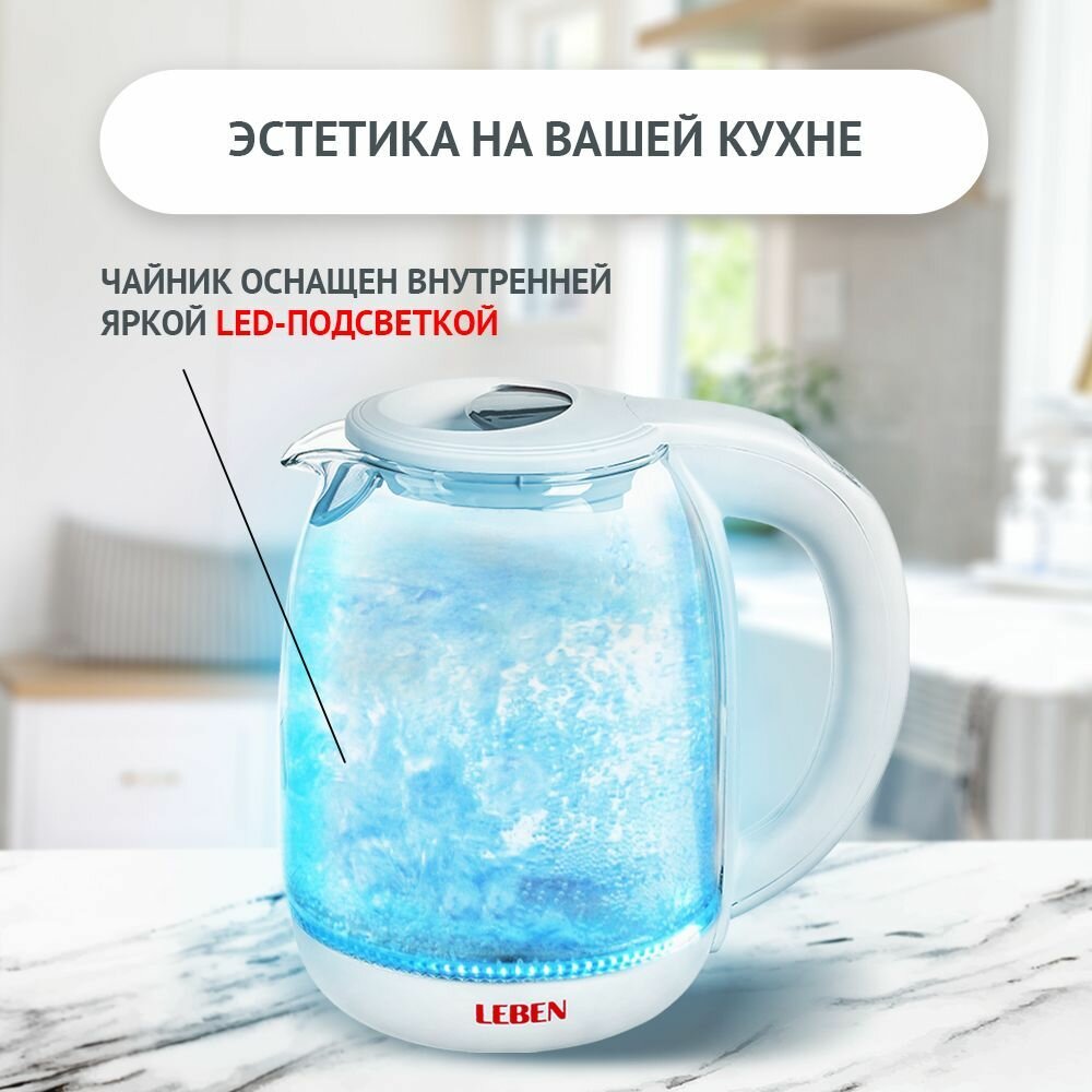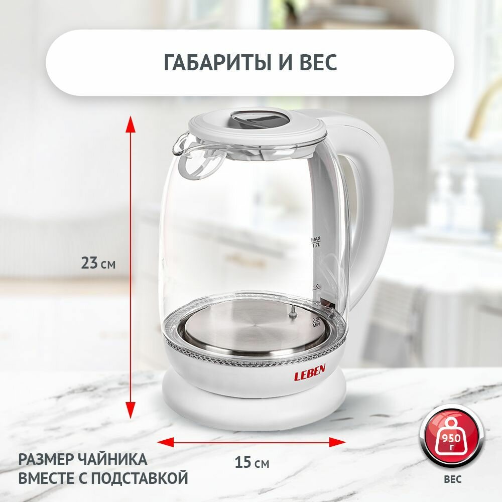 Чайник электрический LEBEN, LED подсветка, 1,7 л, 1850 Вт