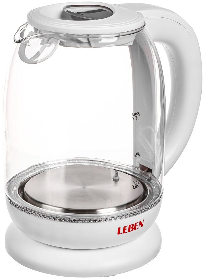 LEBEN Чайник электрический 1,7л, 1850Вт, скрытый нагр.элемент, автооткл., стекло, поддержание темпер
