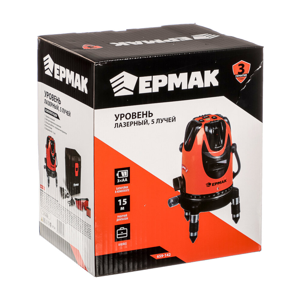 Ермак 659-142 Уровень лазерный 5 лучей, 15м, кейс .