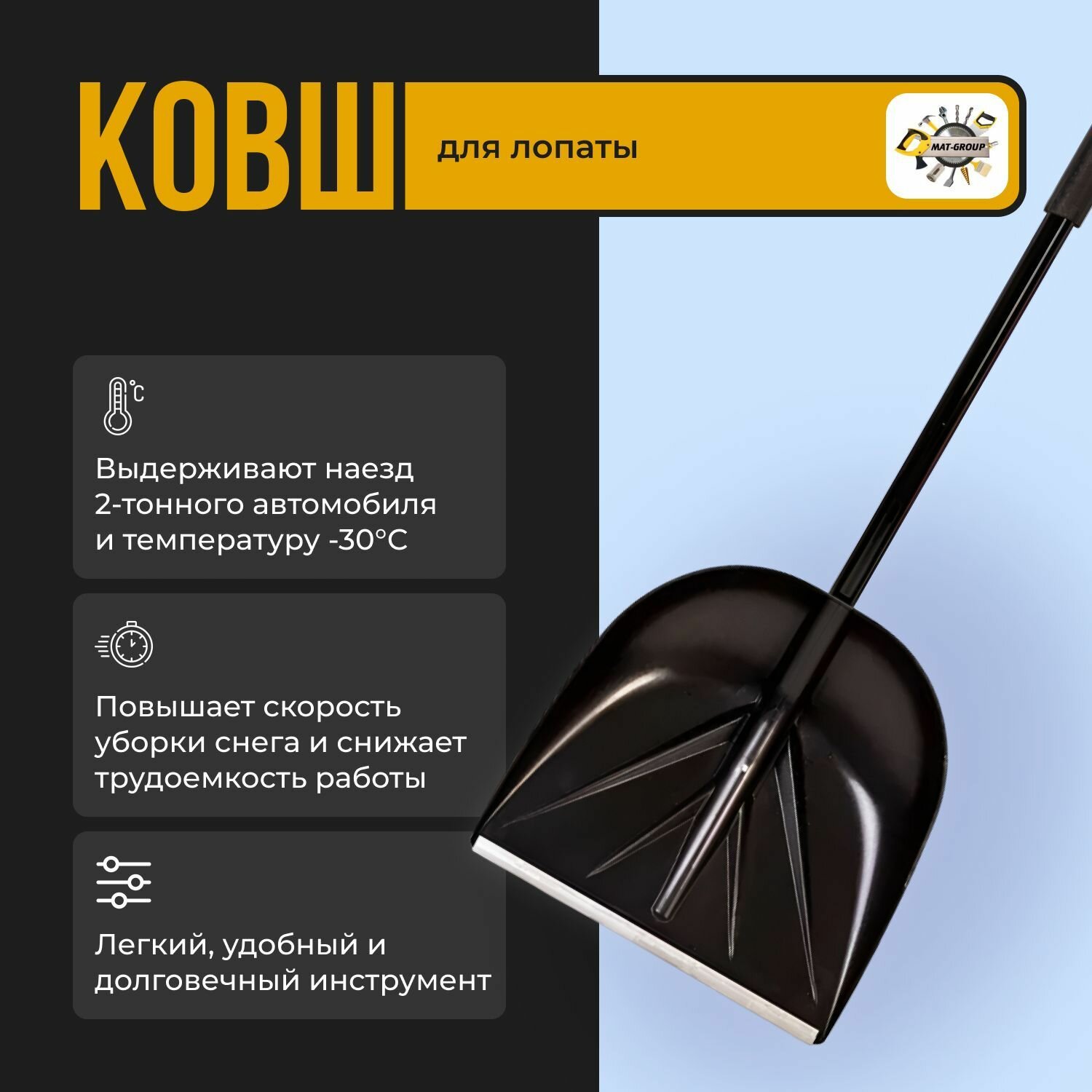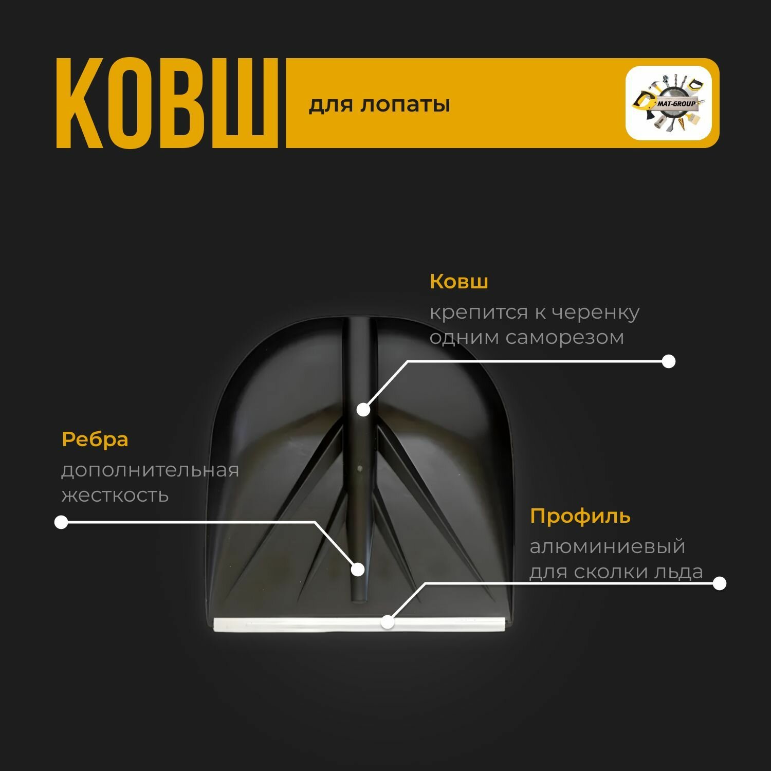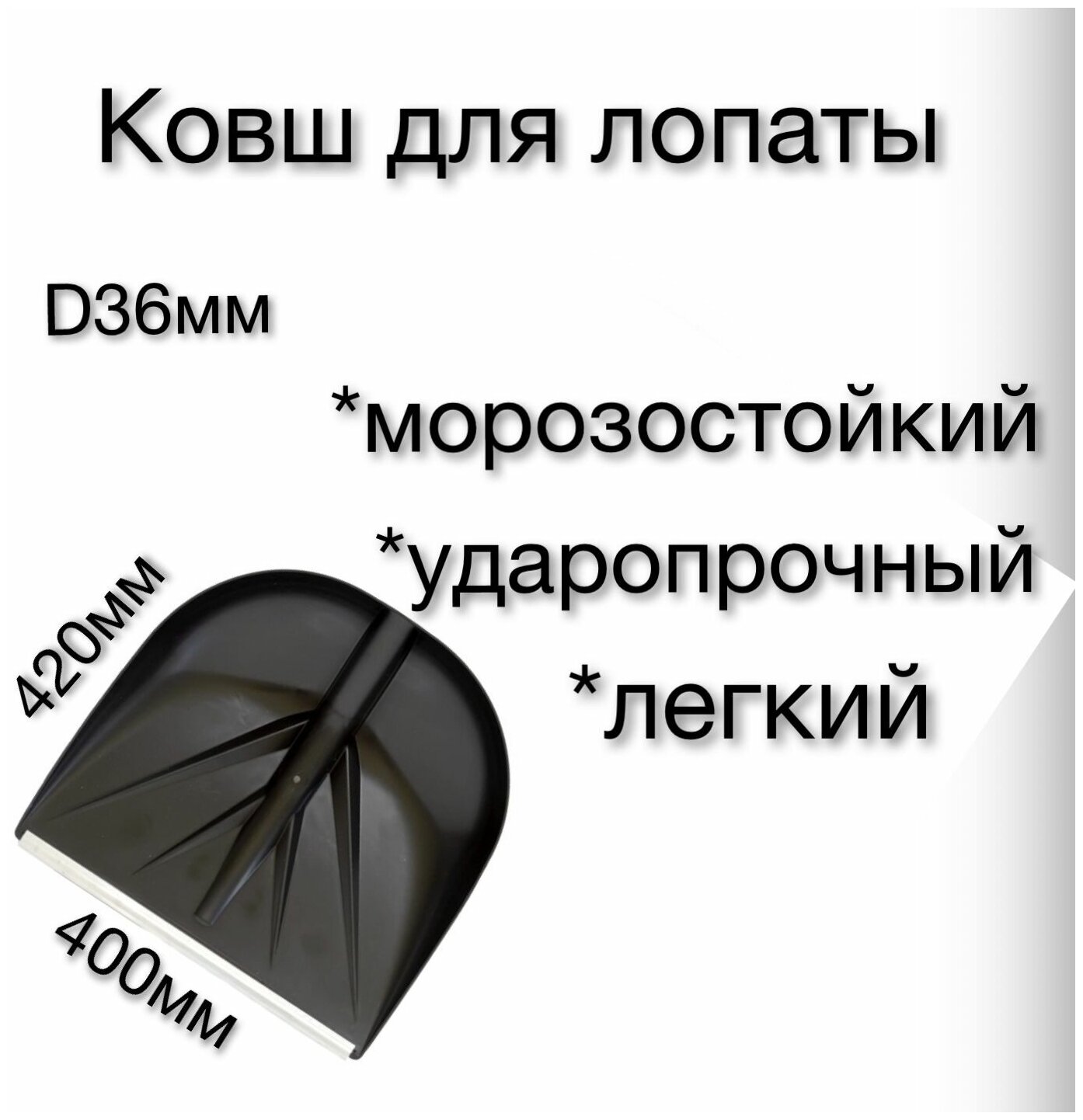 Ковш для снеговой лопаты санта / Ковш для лопаты 420 х 400 мм, чёрный / лопата снеговая / алюминиевая планка / зимняя, для уборки снега