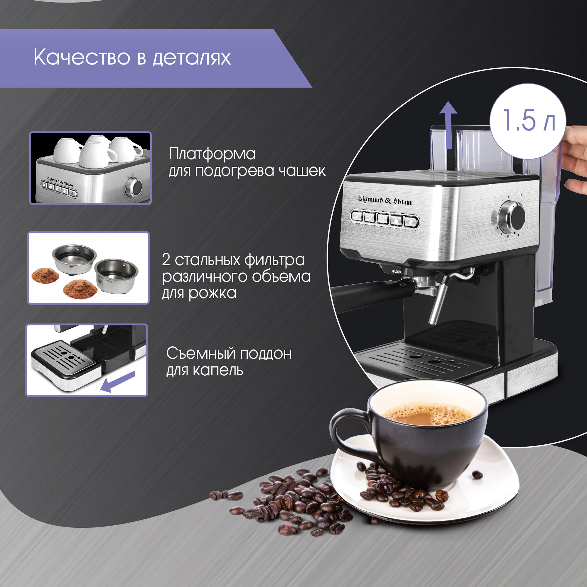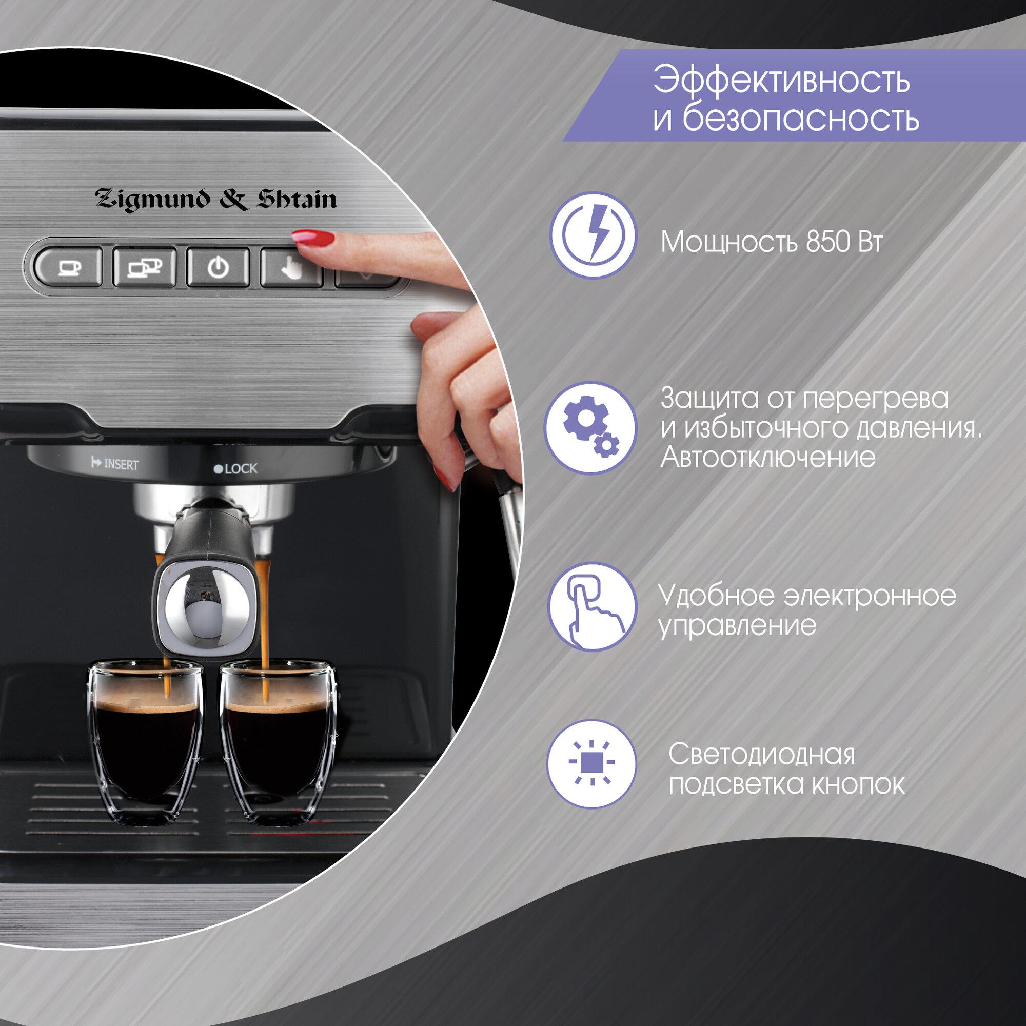 Кофеварка рожковая Zigmund & Shtain ZCM-850, серебристый