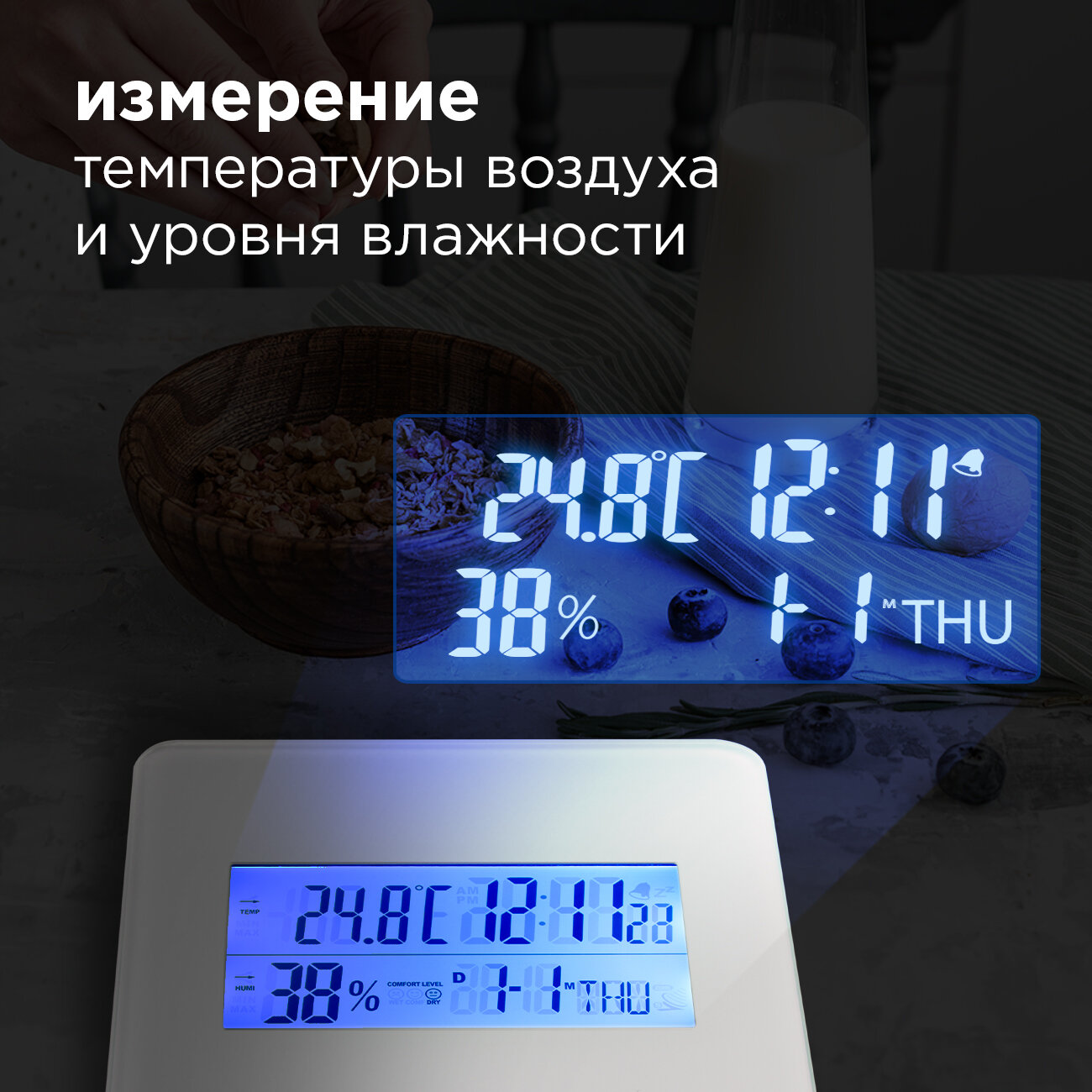 | Плюсы: | Универсальность, весы Часы и метеостанция 3 в одном |