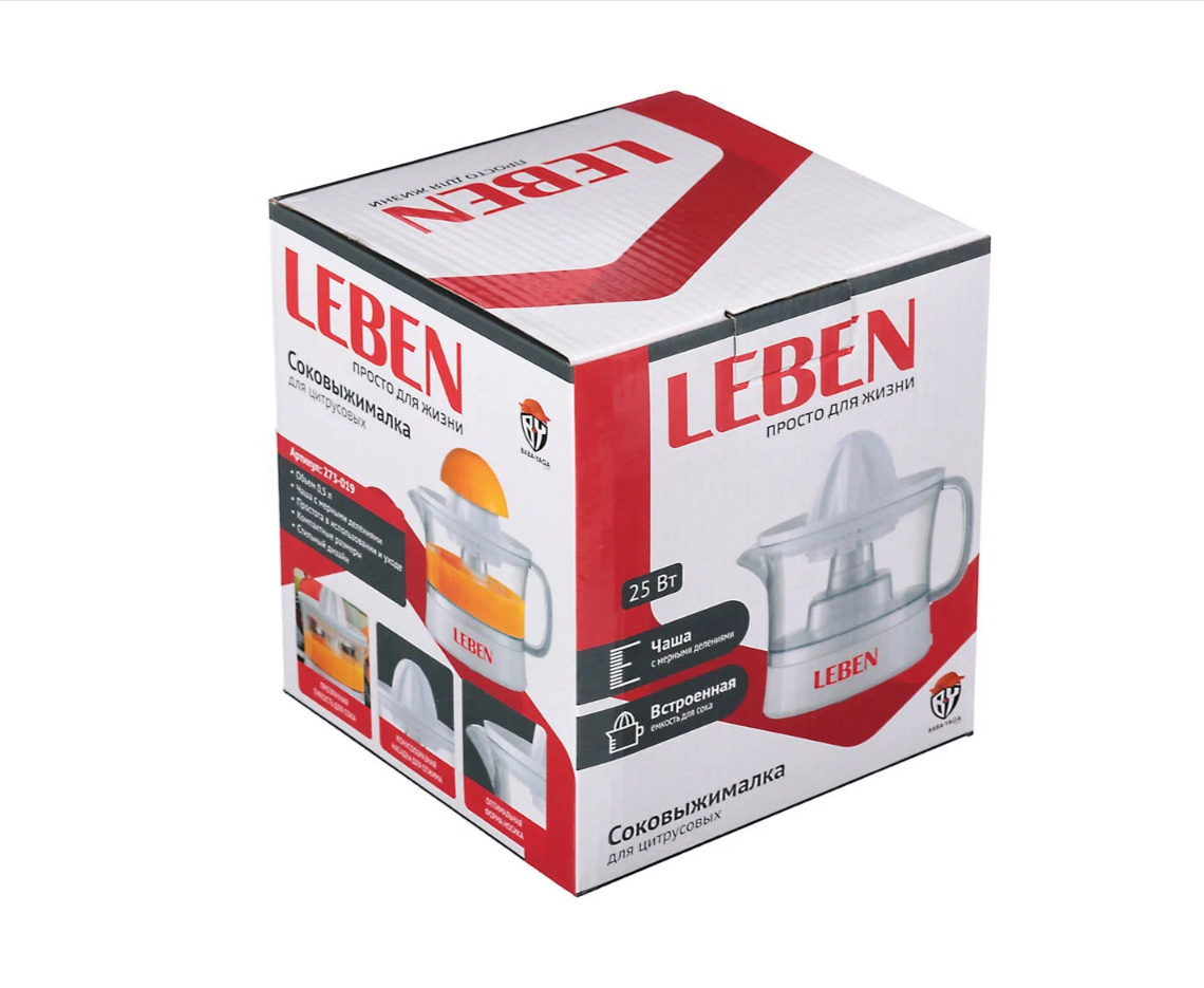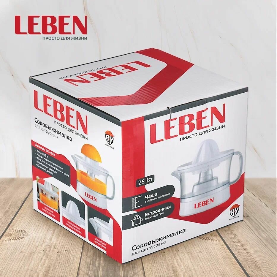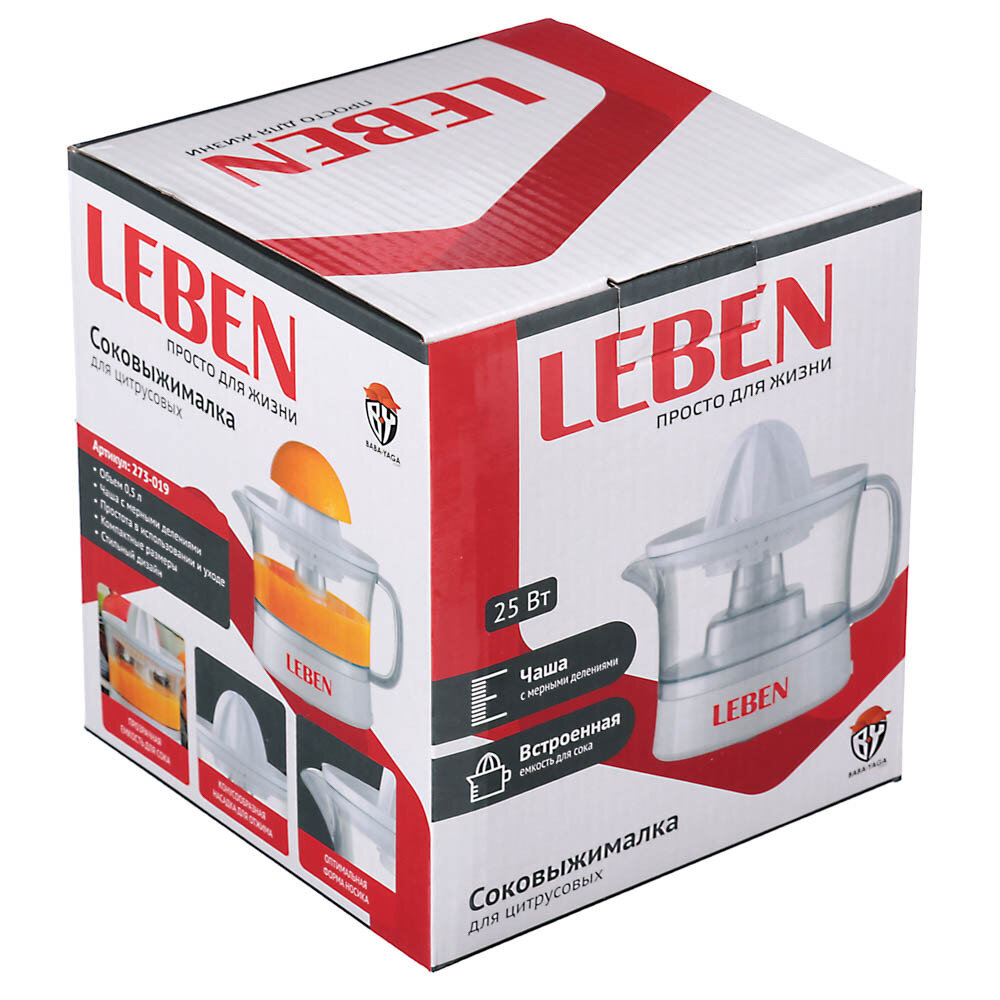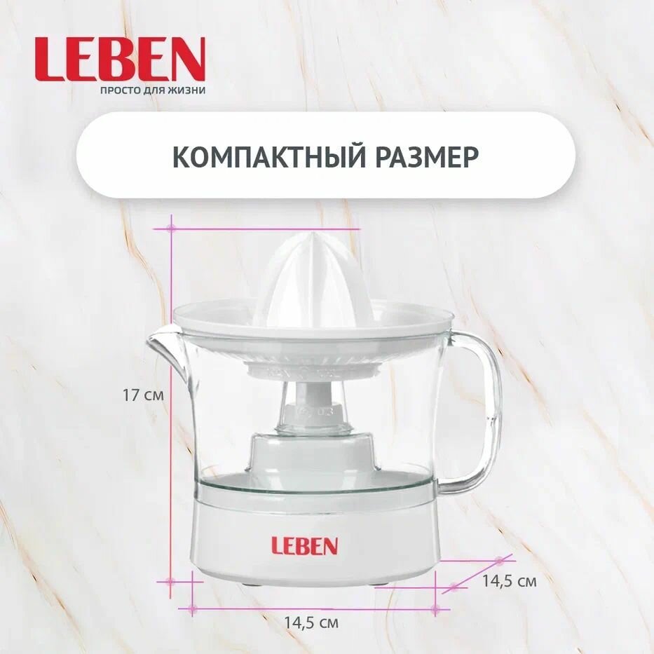 LEBEN Соковыжималка для цитрусовых, 25Вт, встроенная емкость для сока 0,5л, пластик