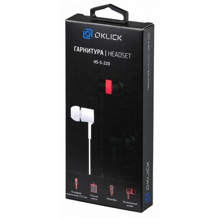 Гарнитура Oklick HS-S-220, 3.5 мм, вкладыши, черный/красный [d2b/r]