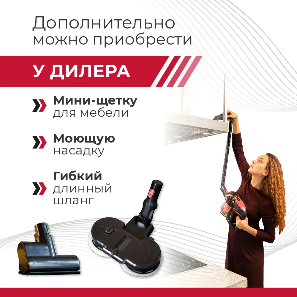 | Дополнительная информация | мощность всасывания : 10.000–20.000 Па; время работы в режиме турбо до 20 минут |