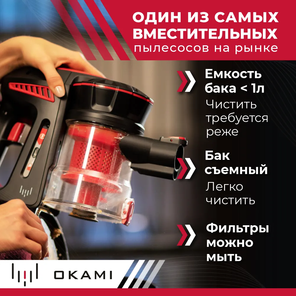 Вертикальный пылесос Okami V50 Red /1017/ интересное: