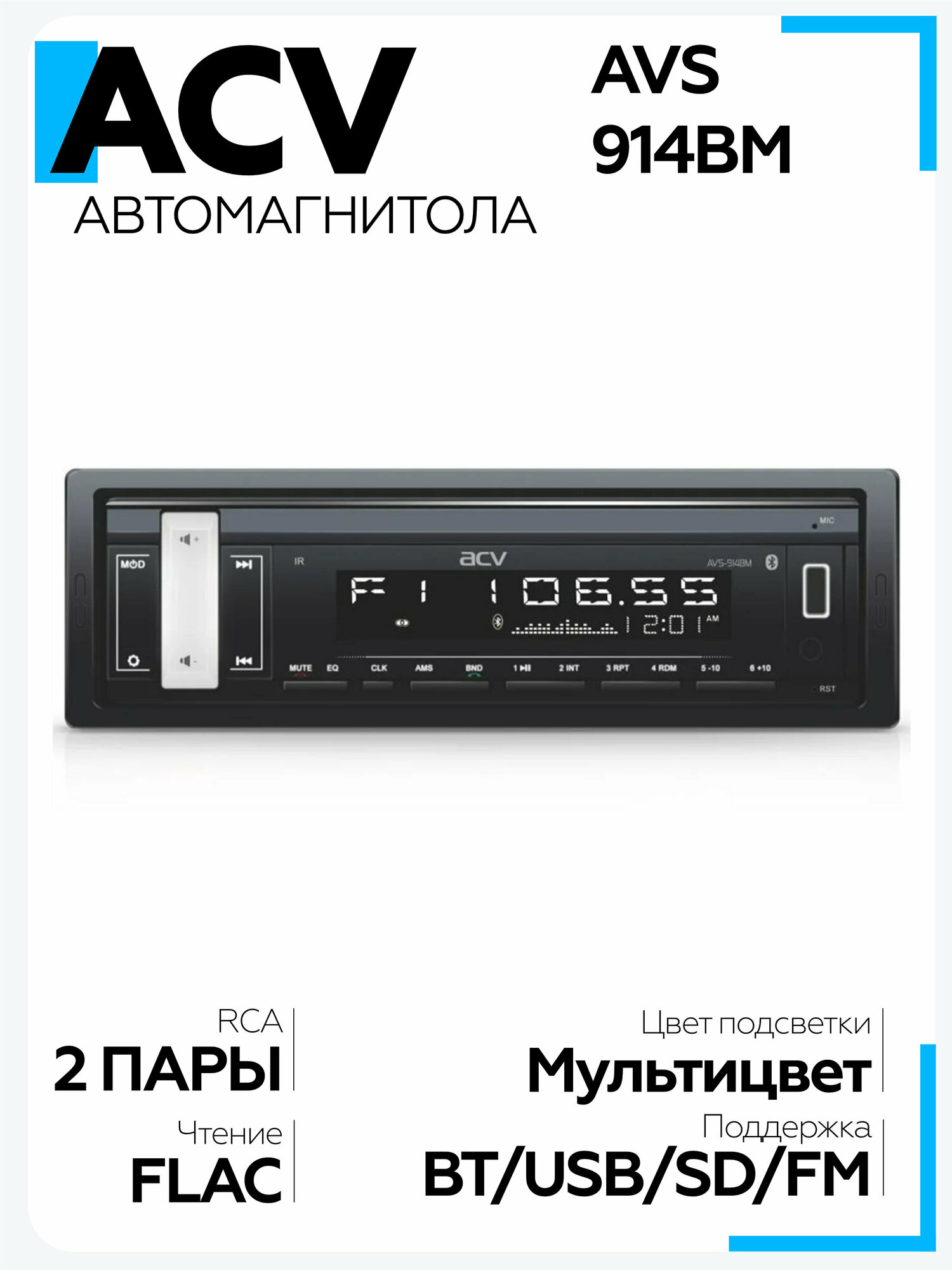 Автомагнитола ACV AVS-914BM 1DIN 4x50Вт