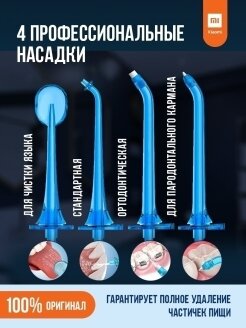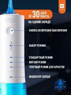 Портативный ирригатор Soocas/ирригатор с 4 насадками в комплекте/7 режимов/струйный ирригатор/голубой