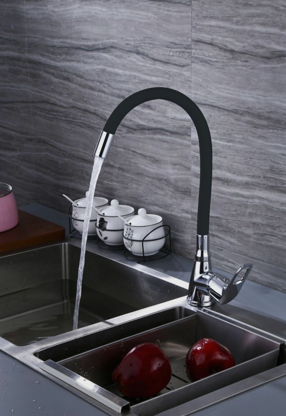 Смеситель для кухни с гибким изливом, хромированный/чёрный