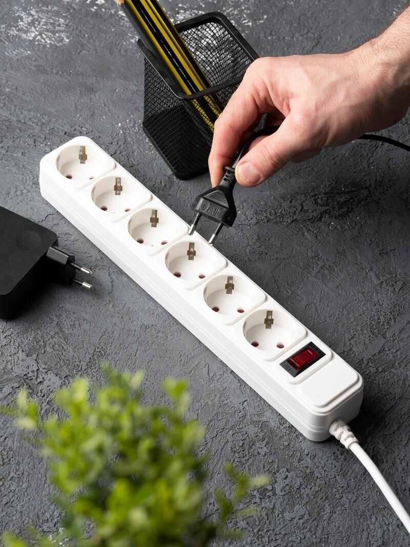 Сетевой фильтр - удлинитель с заземлением, 6 розеток, 1,8 метра, Блокбастер