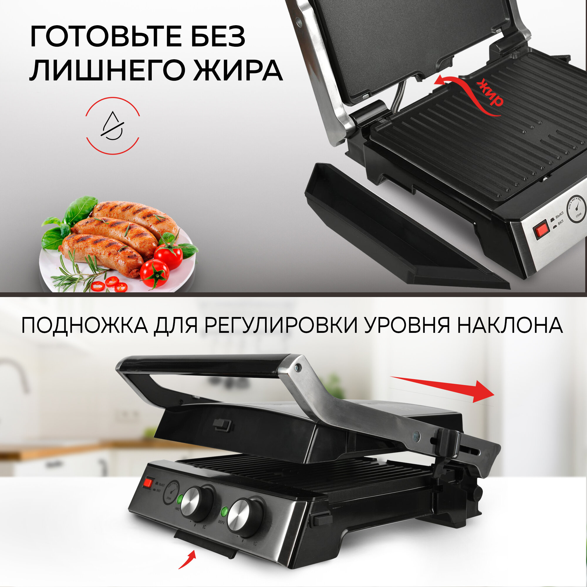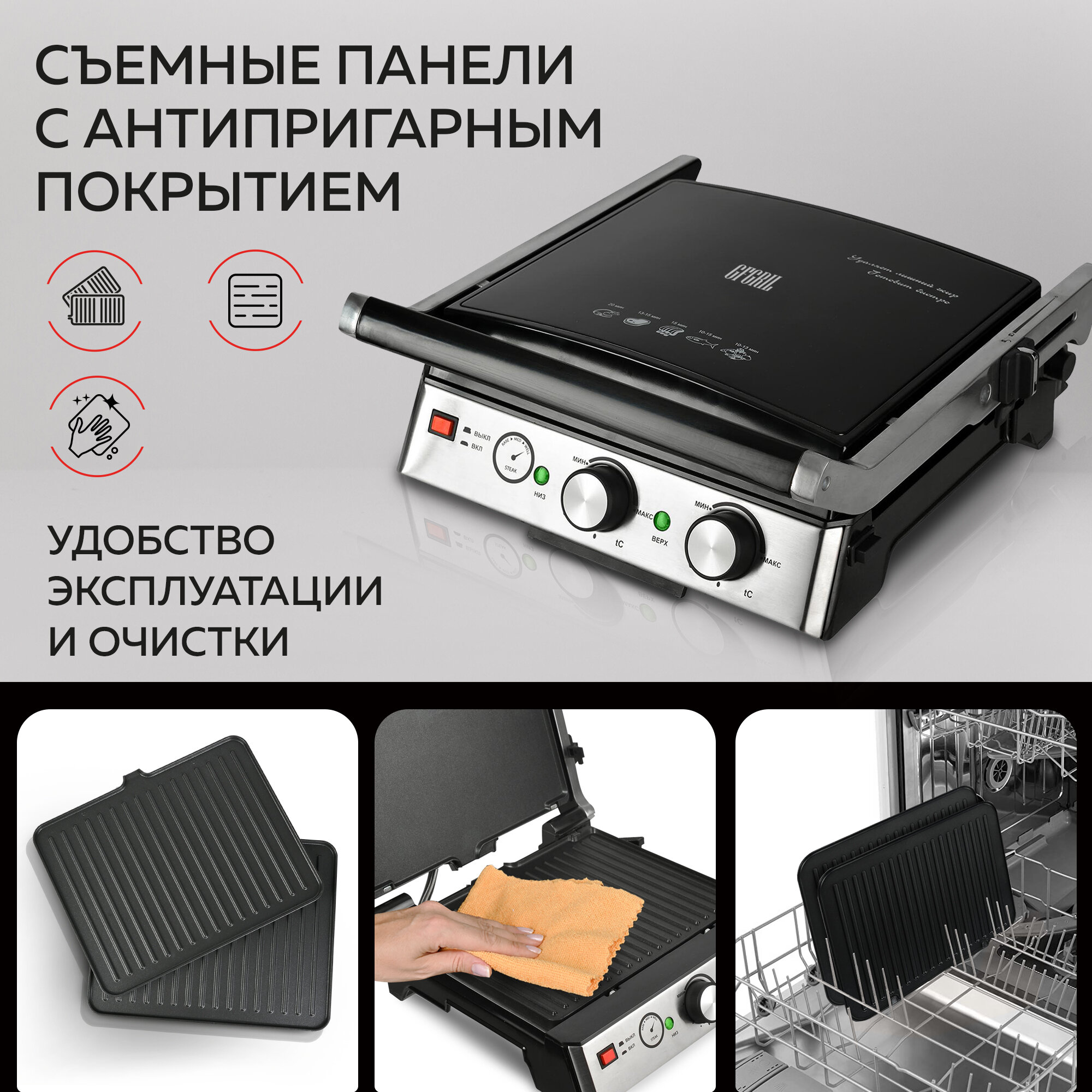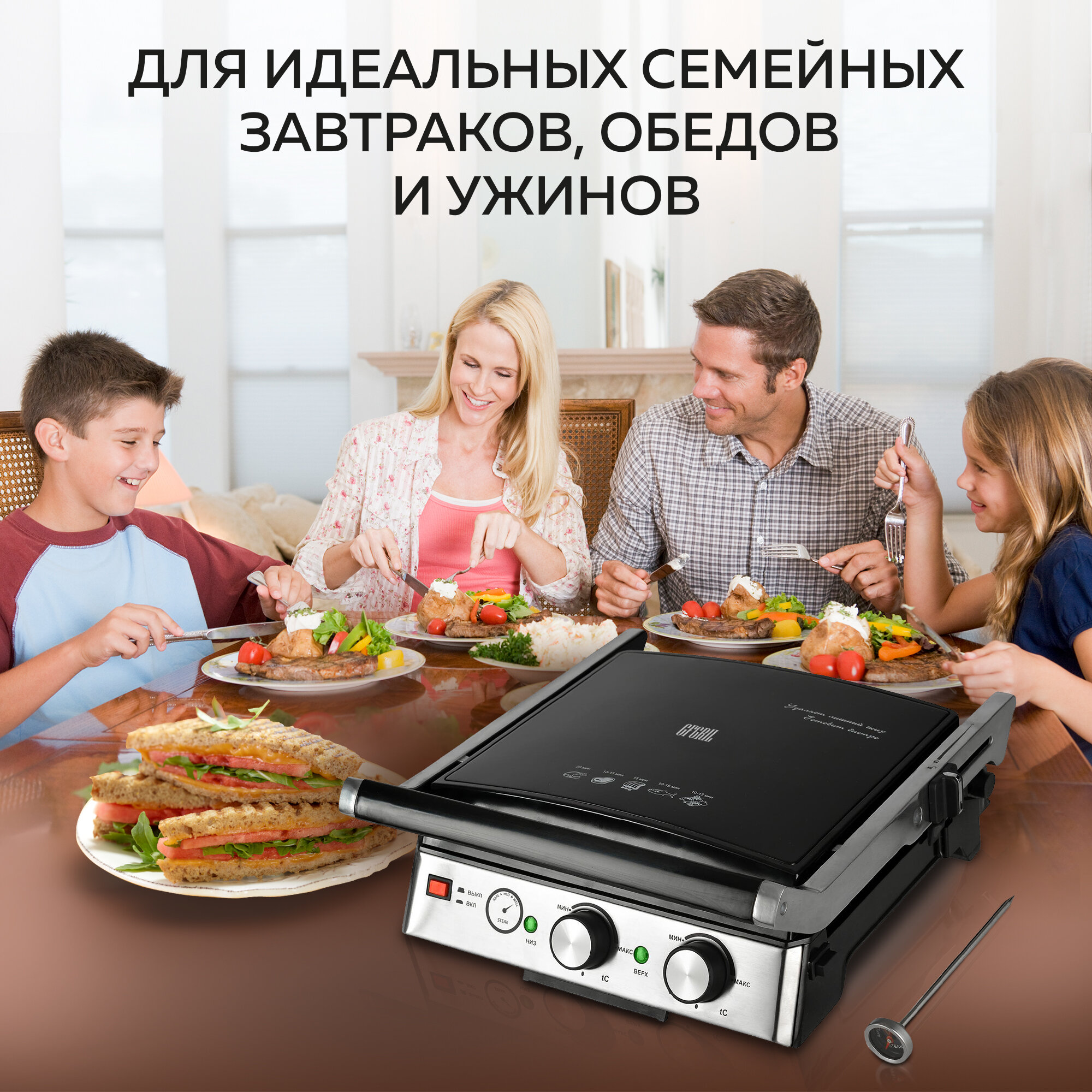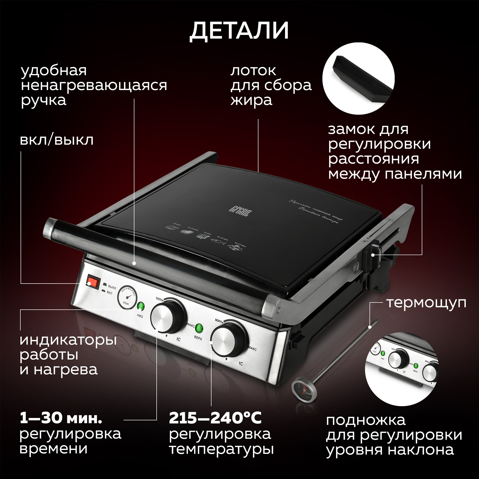 GFGRIL Многофункциональный электрический гриль GF-165, термощуп, функция панини, регулировка наклона, со съемными панелями интересное: