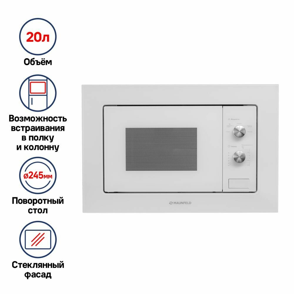 Купить Микроволновая печь MAUNFELD MBMO.20.1PGW, встраиваемая, 20л, 800Вт, белый [ка-00013588]