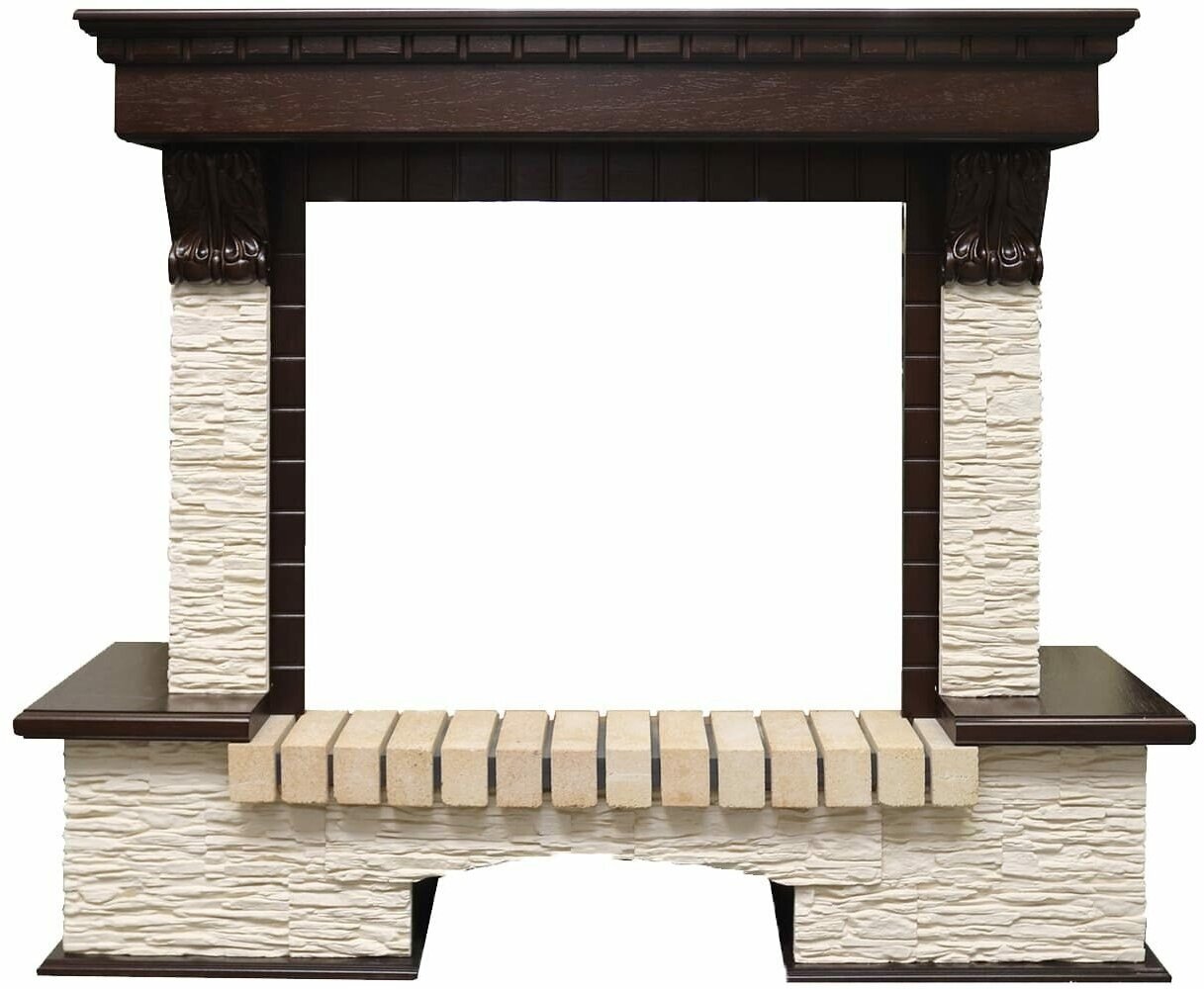 Каминокомплект Pierre Luxe - Темный дуб / Сланец бежевый с очагом Dioramic 28 LED FX