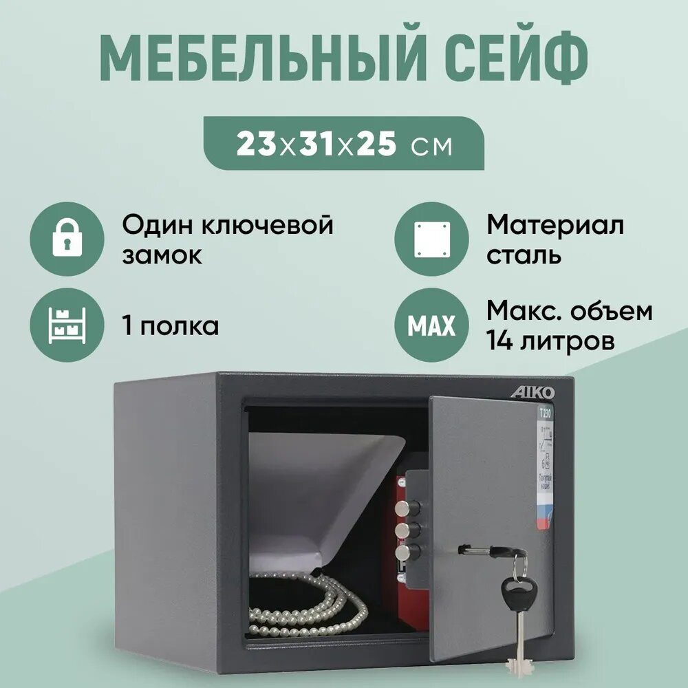 Мебельный сейф AIKO Т-230 KL, для хранения ценностей, документов, 230x310x250 мм.
