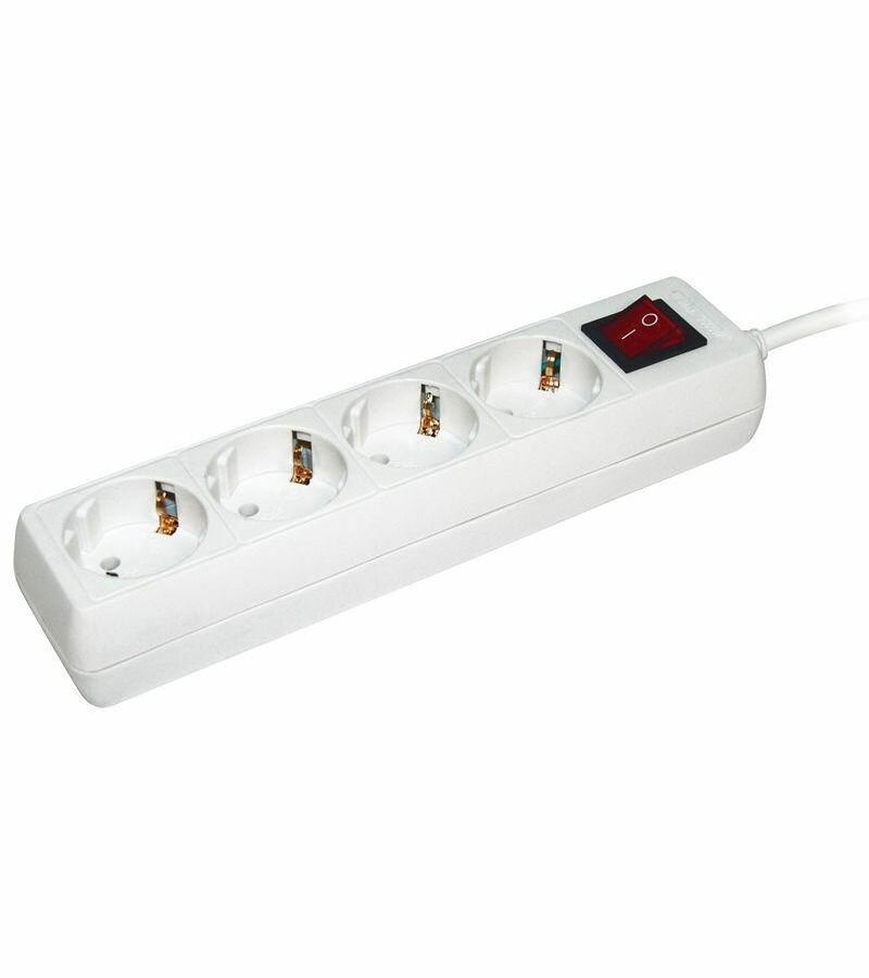 Удлинитель с выключателем IEK У04К-выкл, ПВС 3 x 1 мм², с заземлением, 4 розетки, 5 м, белый