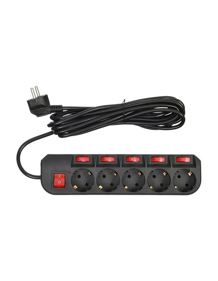 Купить Сетевой фильтр BURO 500SH-5-SW-B черный, 5гн, 5м, индивидуальные выключатели розеток