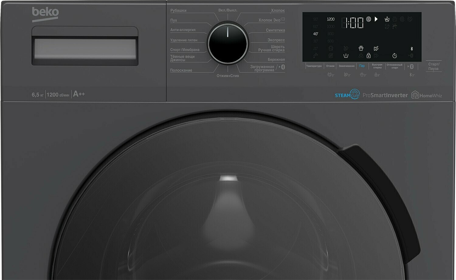 Стиральная машина Beko WSPE6H616S, инверторная, загрузка 6.5 кг, 1200 об/мин, серый