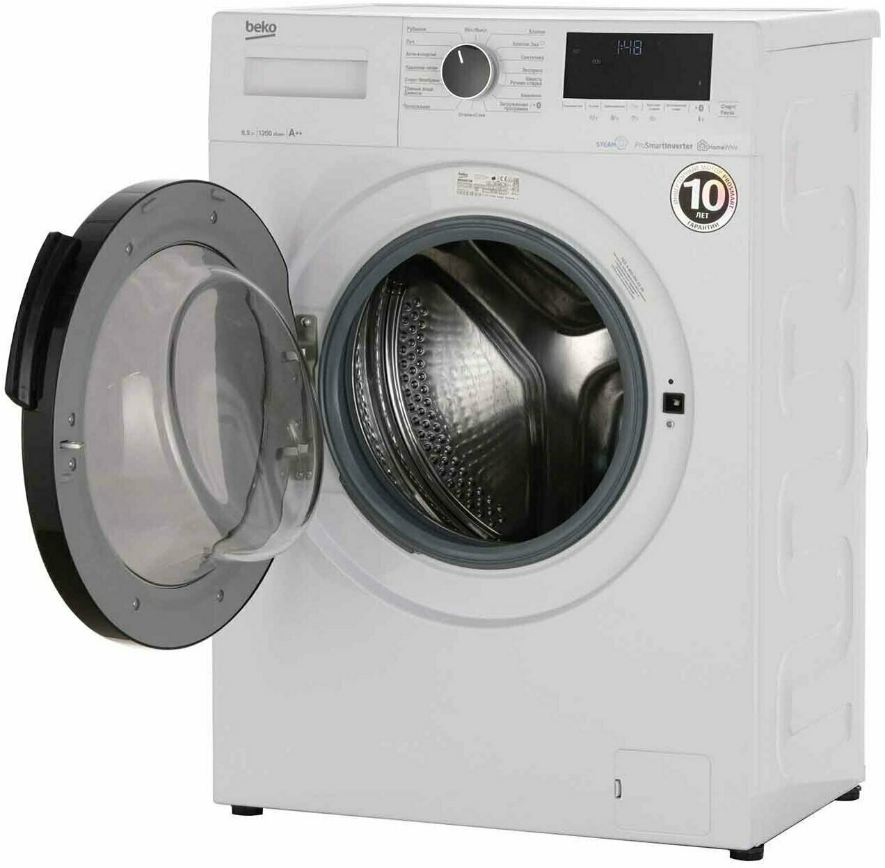 | Плюсы: | Функция обработки паром, инверторный мотор с гарантией 10 лет, быстрая стирка 14 минут |