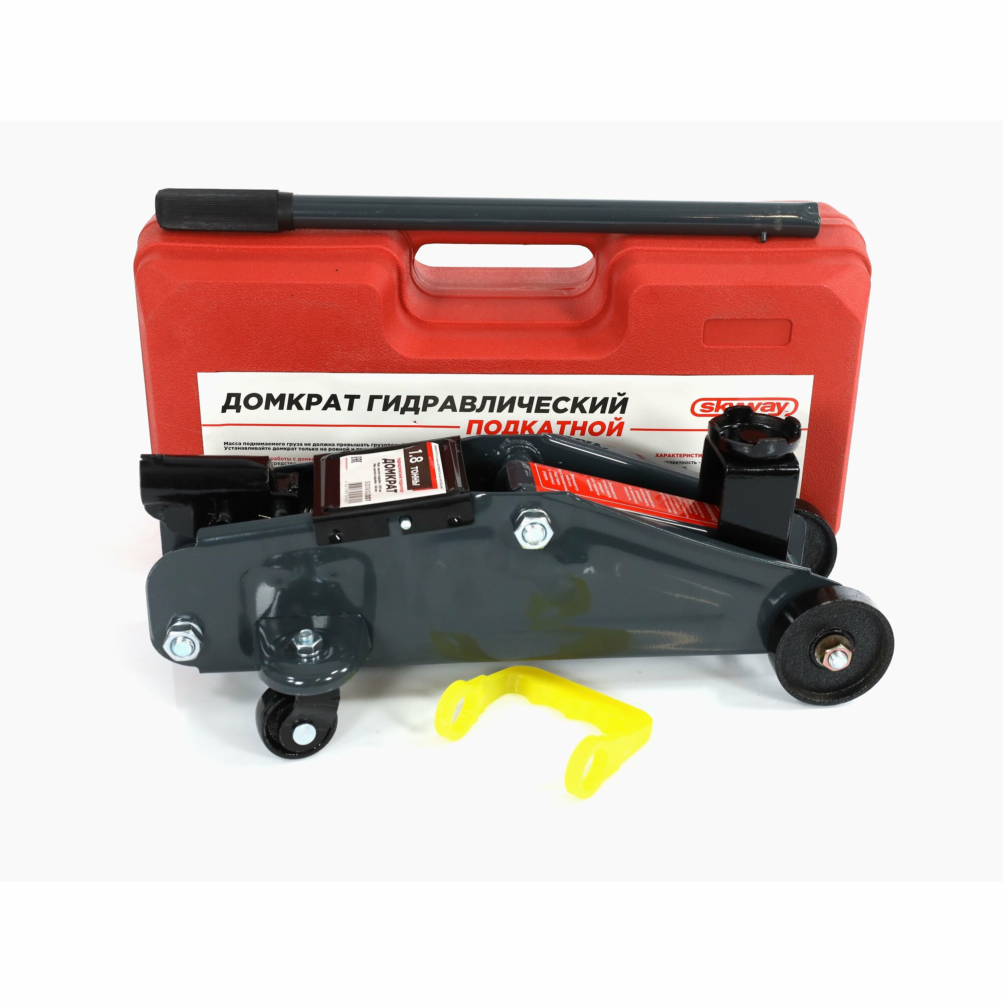 Домкрат подкатной 1.8 т (высота подъема 300 мм), в пластиковом кейсе S01802001 SKYWAY
