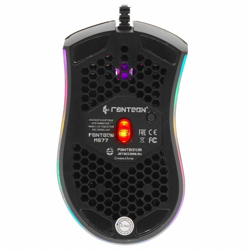Игровая программируемая мышь с подсветкой LED CHROMA LIGHT Jetaccess PANTEON MS77 черная (INSTANT 725 c микроконтр., 60 IPS/20G, 200-7200 dpi, 6 кнопок, LED 10 режимов, кабель 1.8м,USB)