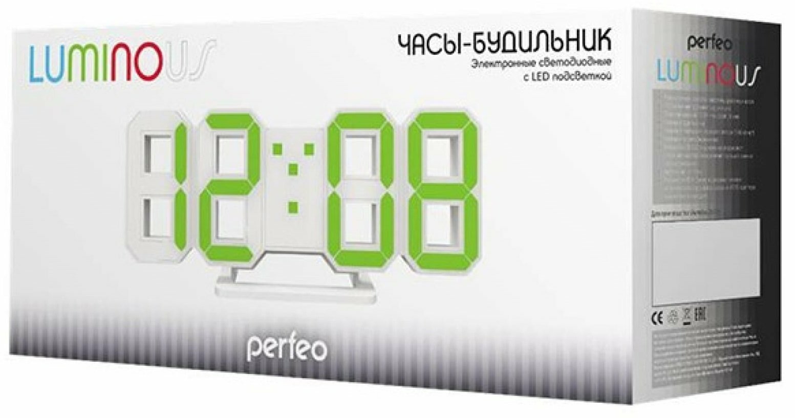 Часы-будильник Perfeo LED LUMINOUS белый корпус, зелёная подсветка 30010071