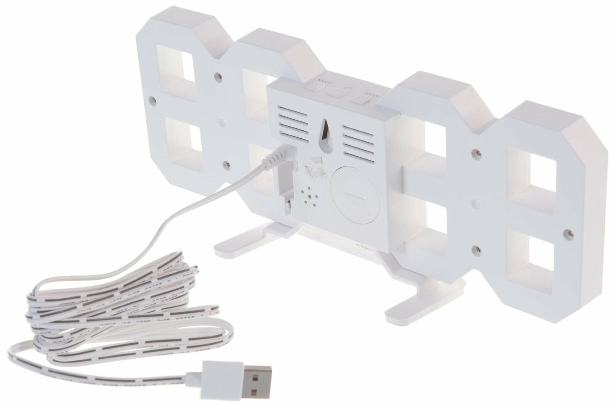 | Минусы: | Недостаток всего один. В комплекте идёт кабель для подключения девайса по USB. Если планируете включать в обычную розетку, придётся искать или покупать адаптер или удлинитель с USB-портами, один из которых будет занят под часы. В комплекте адаптера нет. Имейте это в виду при покупке этих часов. |