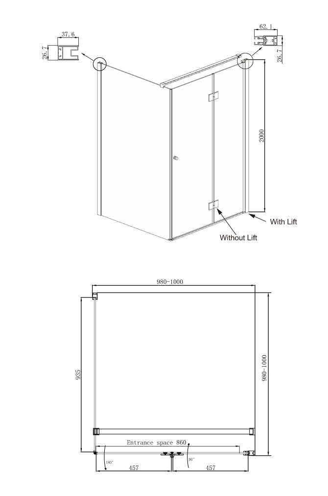 Душевое ограждение Ambassador Diamond 12011106L 1000x1000x2000