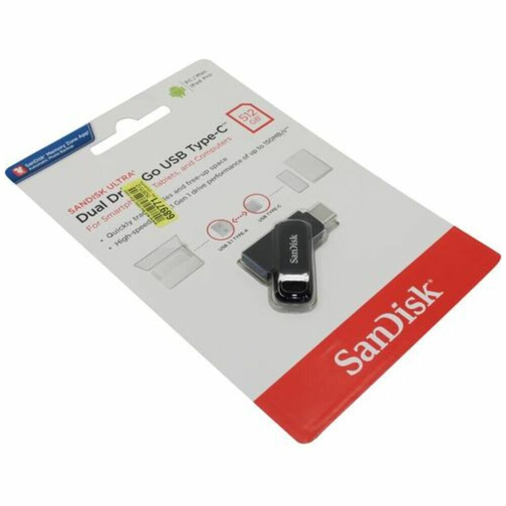 Купить USB флешка Sandisk 512Gb Ultra Dual Drive Go USB 3.1 gen 1/ USB Type-C 150 Mb/s