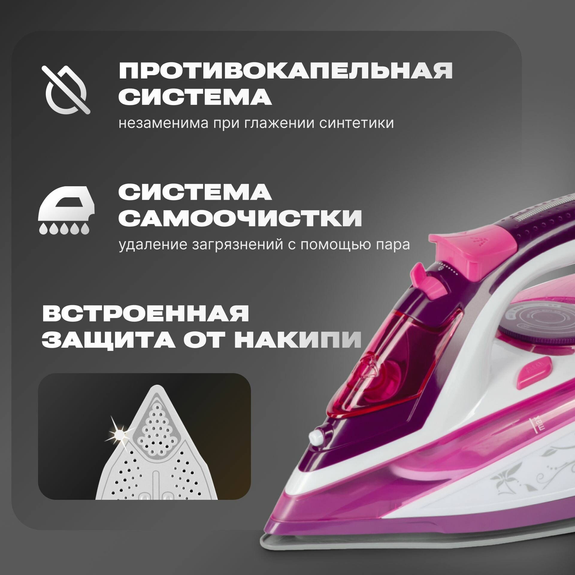 Утюг Eurostek EEI-2603 (2600 Вт, керамическое покрытие) бел-розовый