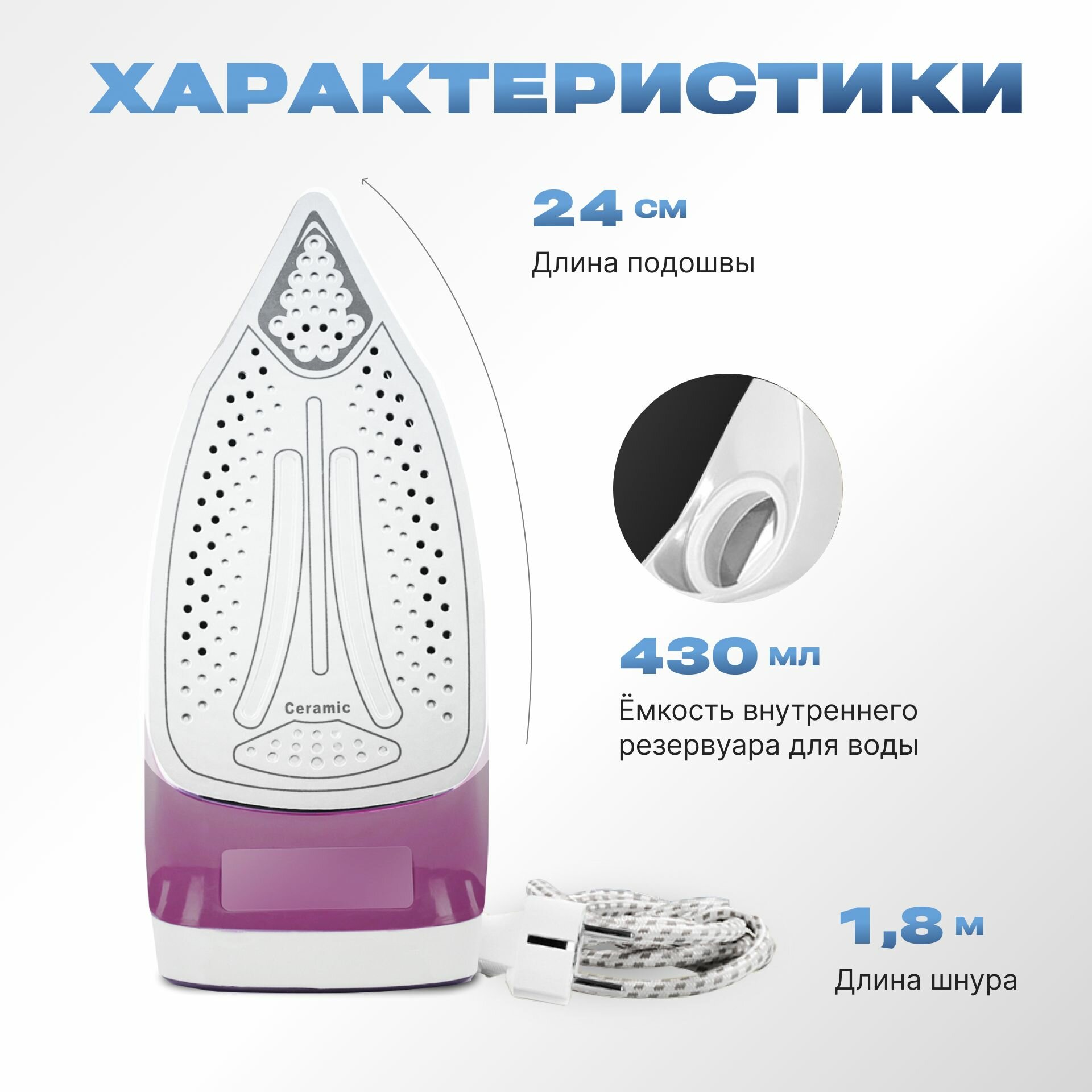 Утюг Eurostek EEI-2603 Мощность 2600Вт, длина подошвы: 24см, керамическая подошва, система самоочис .