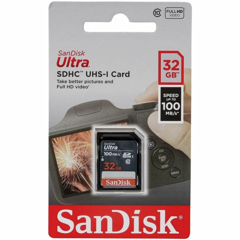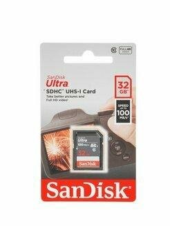 Карта памяти SDHC SanDisk 32Gb Ultra 100MB/s SDSDUNR-032G-GN3IN, 1шт.