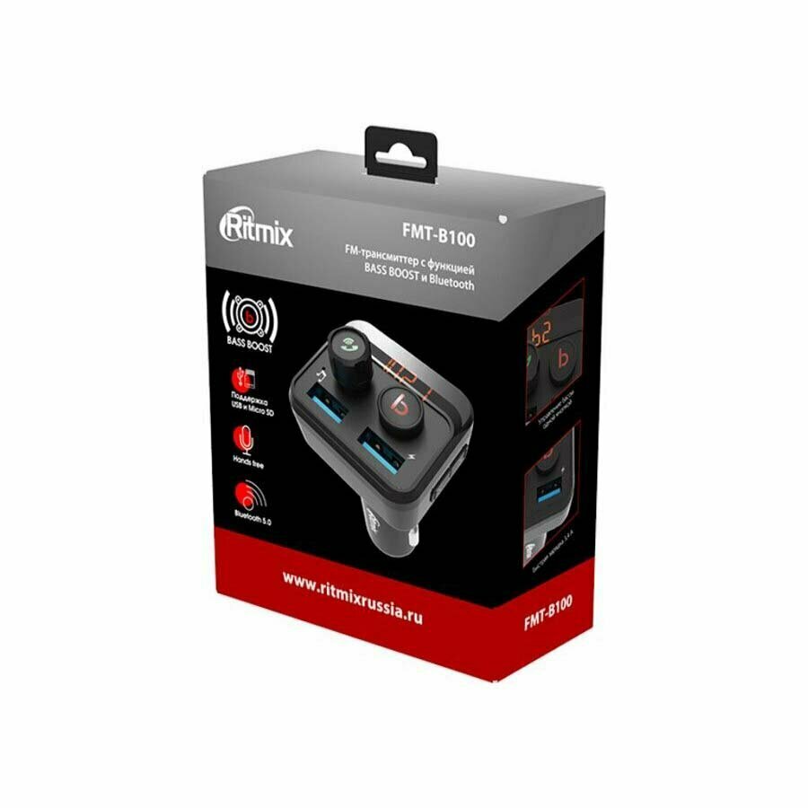 FM-трансмиттер с LED дисплеем Ritmix FMT-B100 (80000554), 1887927