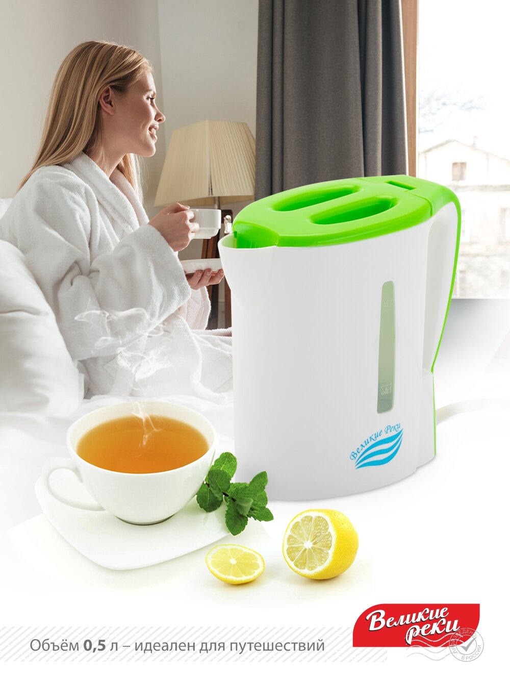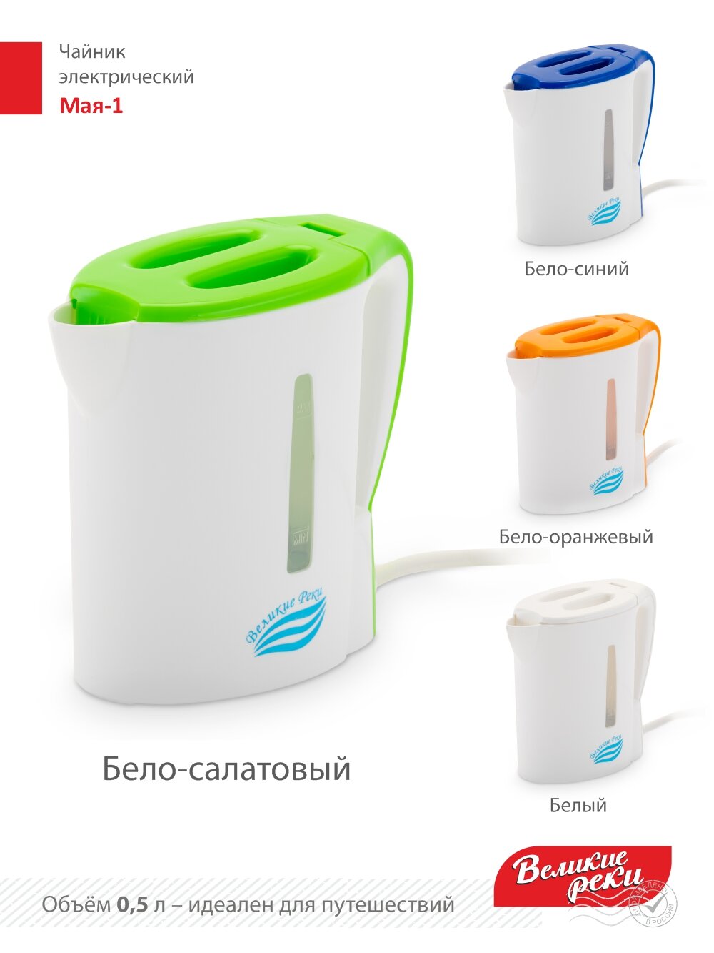 Чайник электрический великие реки Мая-1 бело-салатовый, 0,5 л
