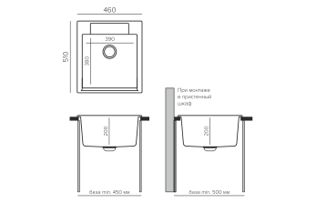 Polygran ARGO-460, мойка, мрамор, черный 16