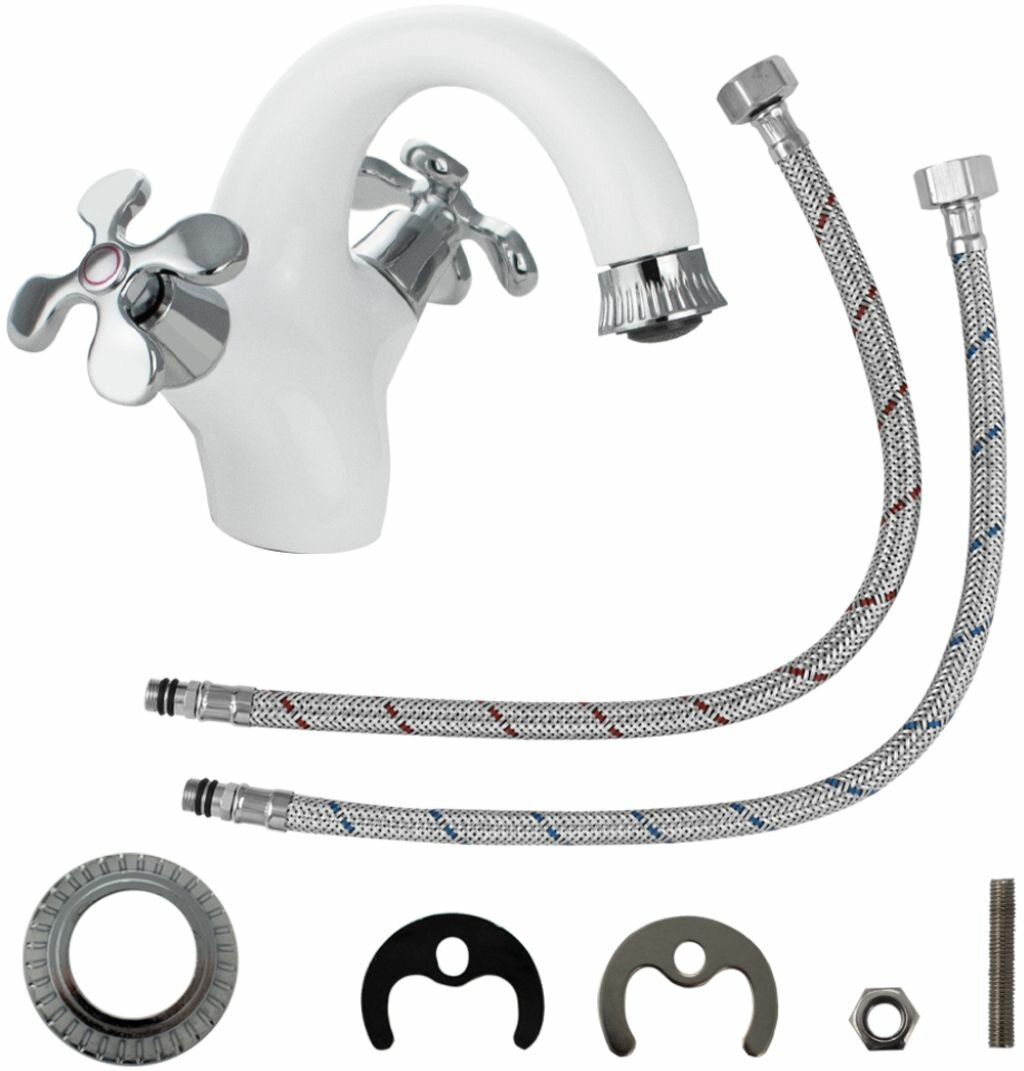 Gfmark 5930 Смеситель На Раковину Металлокерамика Ручка Крест Комбинированный С Белой Эмалью