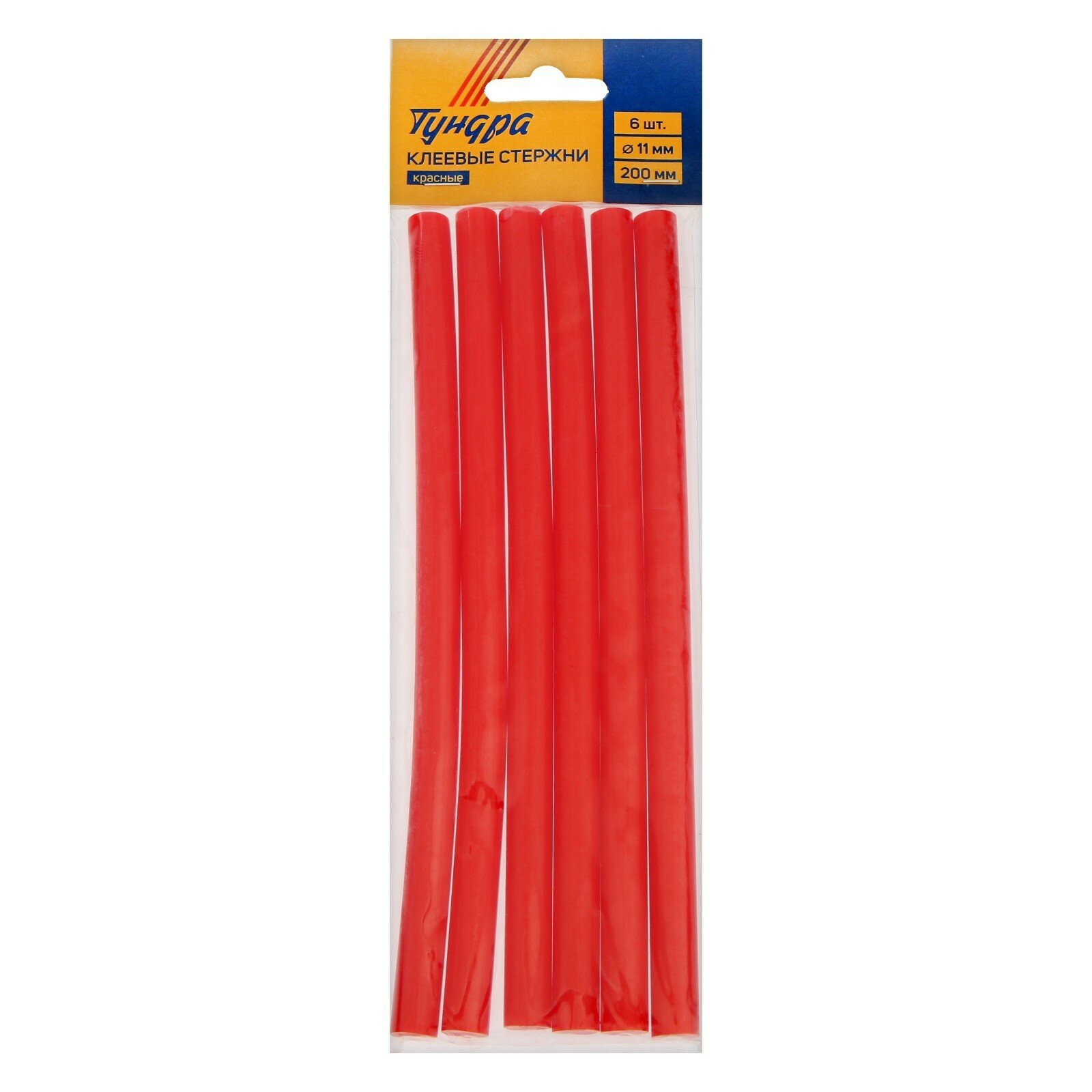 Клеевые стержни тундра, 11 х 200 мм, красные, 6 шт.