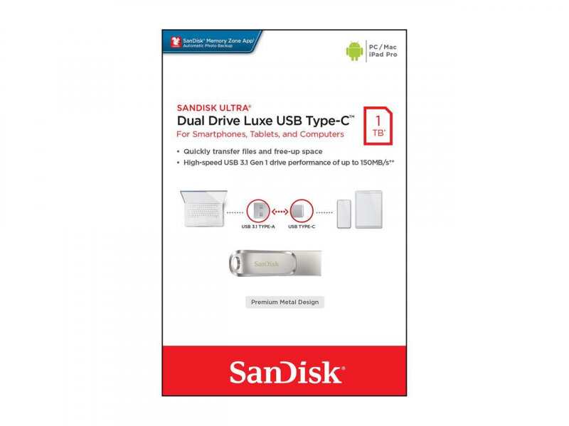 1Tb Sandisk Ultra Dual Drive Luxe USB 3.1 gen 1/ USB Type-C 150 Mb/s