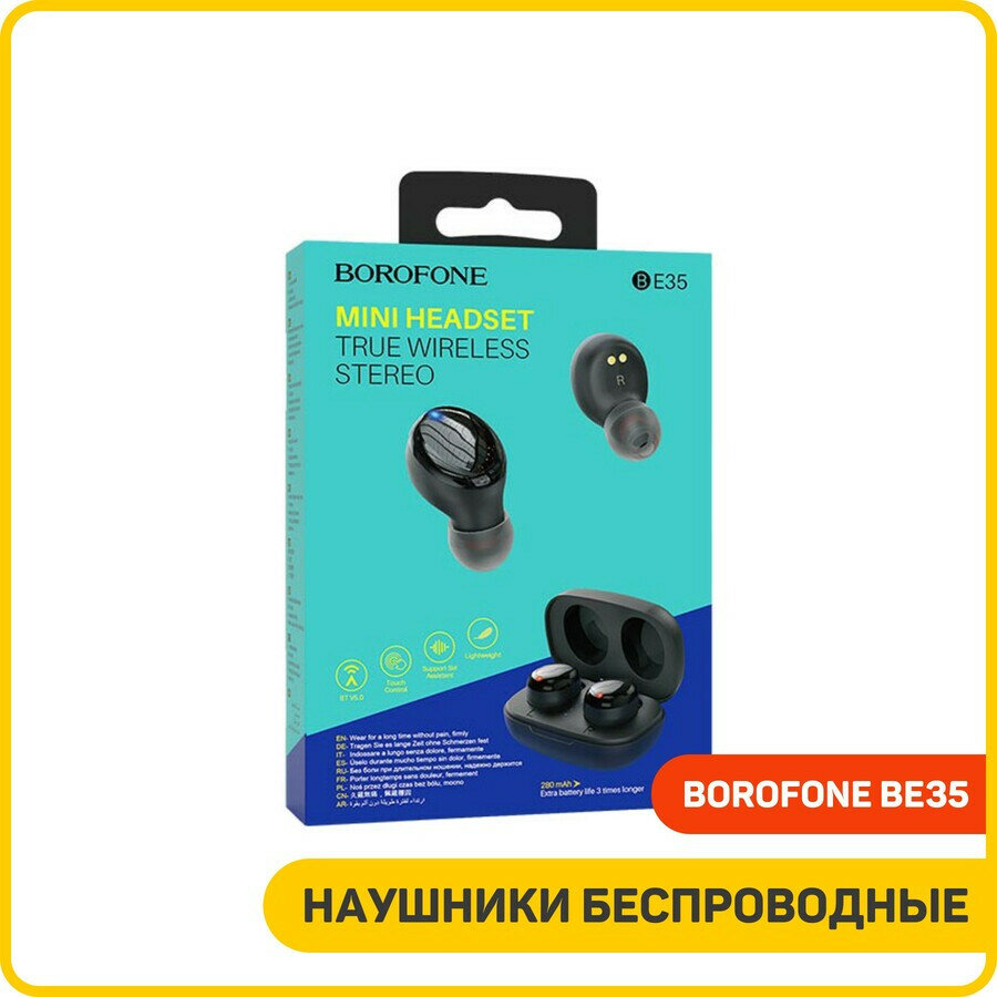 Наушники беспроводные Borofone BE35, вакуумные, TWS, микрофон, BT 5.0, 45/280 мАч, черные